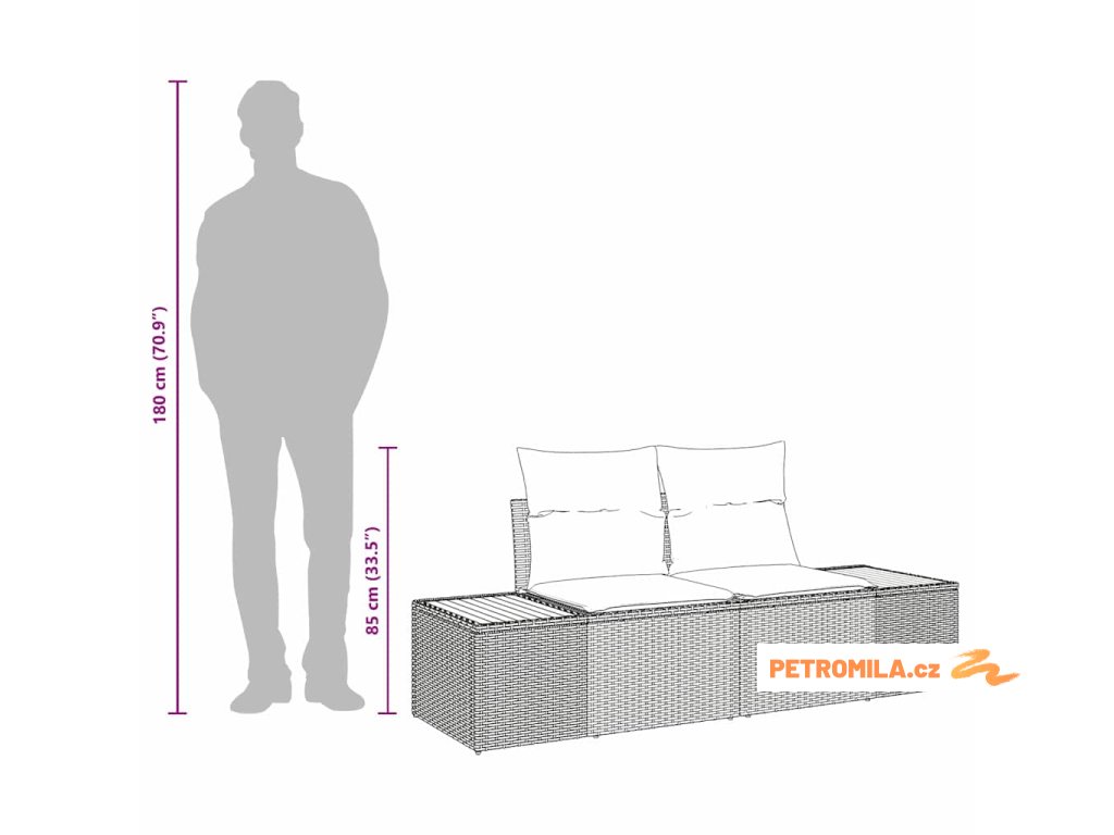 - Poly ratanová konstrukce - Hlavní materiál je poly ratan, co zvládá počasí. Chrání před UV paprsky a dává stylový pletený vzhled, který se hodí k moderním venkovním prostorům. Ratan také udržuje pohovku v dobrém stavu, takže nabídne kouzlo i spolehlivost.