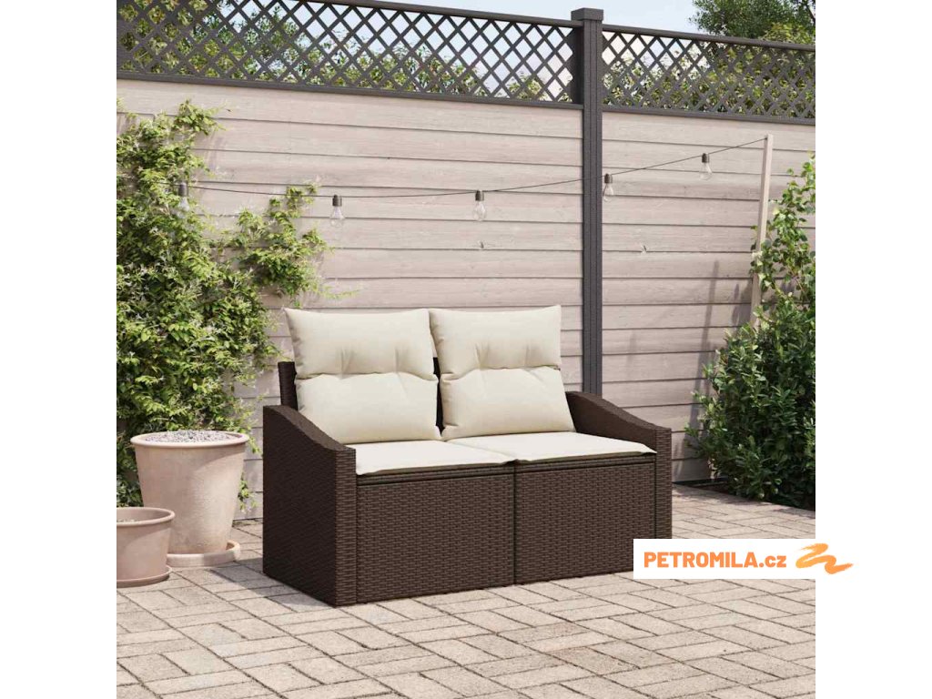 Zahradní sofa s polštářem Hnědá 123 x 62 x 69cm polyratan