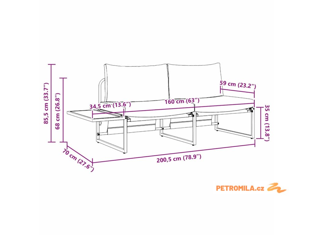 - Celkové rozměry: 200.5 x 70 x 85.5 cm (D x Š x V)