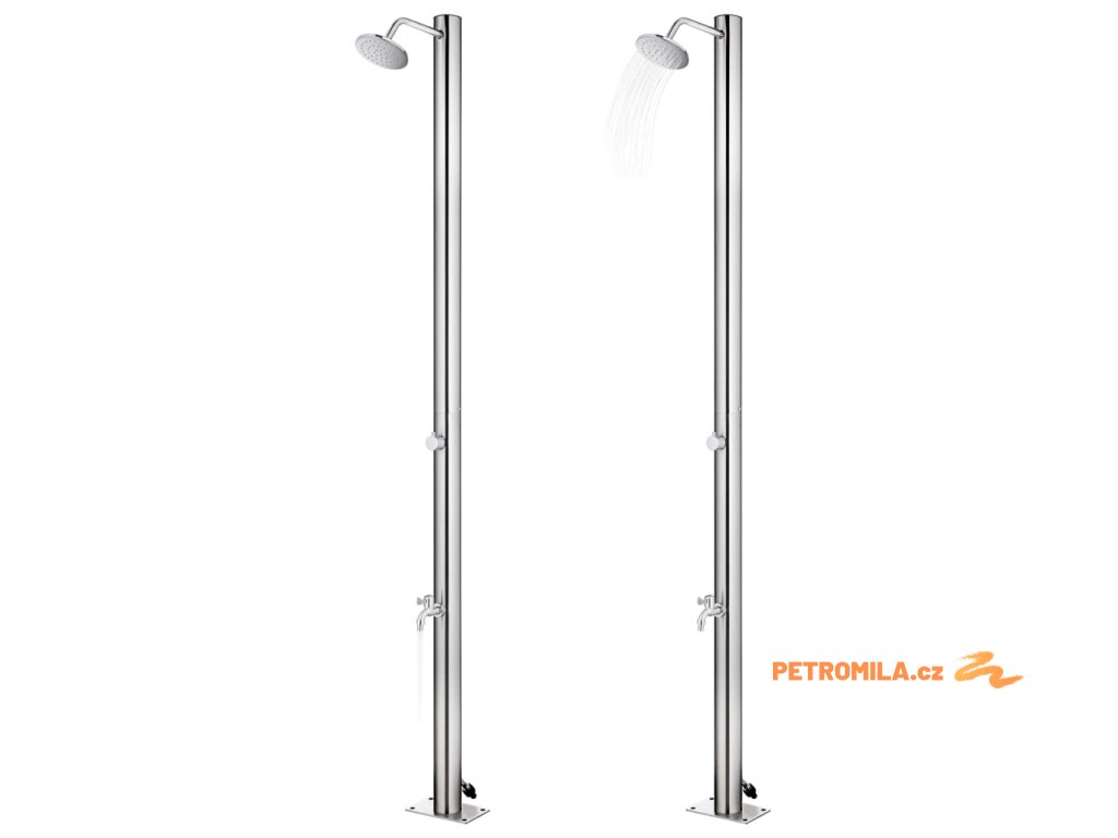 Venkovní sprcha je vyrobená z nerezové oceli, takže je odolná vůči povětrnostním vlivům. Sprchový systém s hlavovou sprchou a kohoutkem na mytí nohou vyhoví všem vašim potřebám při zahradničení, zalévání a rychlém sprchování.