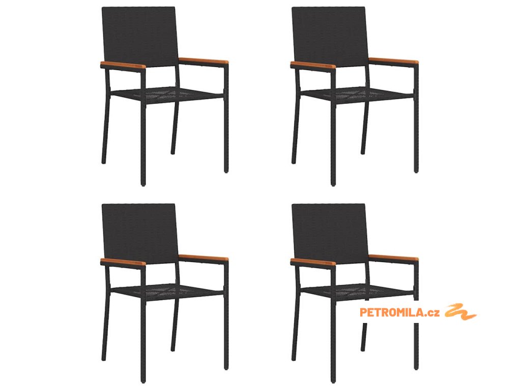 Zahradní stohovatelné židle 4 pcs Černá a hnědá