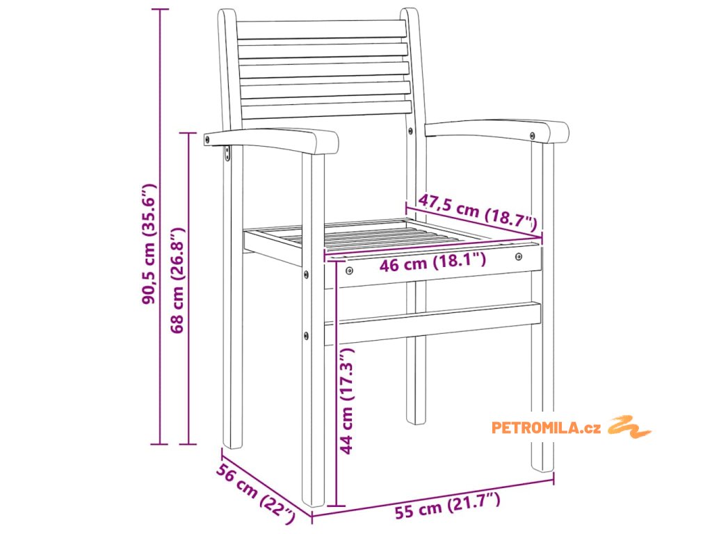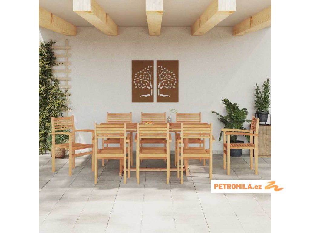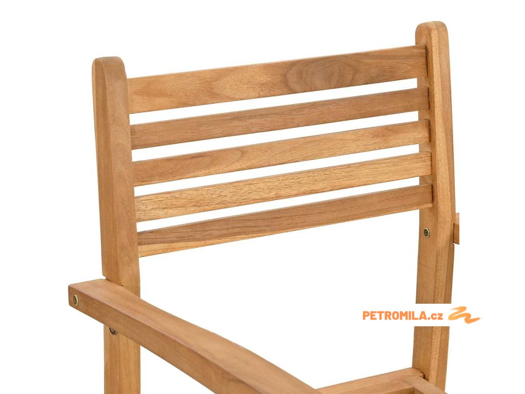 Matná hnědá povrchová úprava Matný povrch vylučuje teplý a přívětivý pocit, který dokonale doplňuje klidné prostředí vaší zahrady. Jeho tlumený hnědý odstín poskytuje nenápadnou eleganci, která se hodí k různým venkovním prostředím, od moderních teras po tradiční patia.,Masivní teakový materiál Precizně vyrobeno z masivního teakového dřeva, známého pro svou dlouhověkost a odolnost vůči povětrnostním vlivům. Tento prémiový materiál zaručuje léta používání a podporuje design židle, zatímco si zachovává přirozený a nadčasový vzhled i za měnících se povětrnostních podmínek.,Úsporný skládací design Tyto modulární židle jsou navrženy tak, aby byly stohovatelné, což umožňuje optimalizaci každého centimetru vašeho venkovního prostoru. To zajišťuje snadné skladování během mimo sezóny nebo když je potřeba více místa pro větší setkání.,Ergonomické opěrky na ruce Ergonomicky tvarované opěrky na ruce nabízejí odpočinek a pohodlí, což podporuje delší a uvolněnější používání. Opěrky nejsou pouze funkční, ale také zlepšují celkový design, spojující styl s obsahem.,Pokyny k údržbě Aby se prodloužila životnost a vzhled vašich židlí, doporučuje se používat obal, když se nepoužívají. Jednoduchý suchý hadřík odstraní prach a péče s ochranným krytem zajistí, že vydrží sezónní změny.- Barva: Hnědá