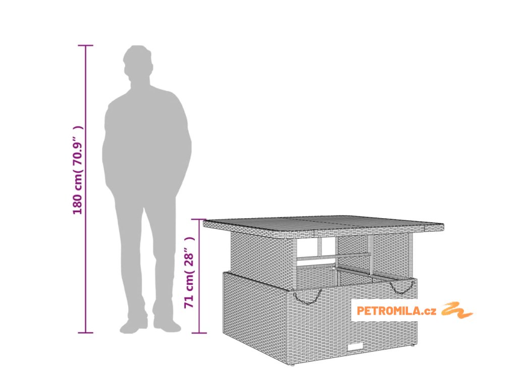- Nastavitelná deska stolu: Stolní desku lze zvednout tak, aby stůl byl vyšší, takže jej můžete přeměnit z konferenčního stolku na jídelní. Skvěle se hodí pro návštěvy nebo pro stolování venku.