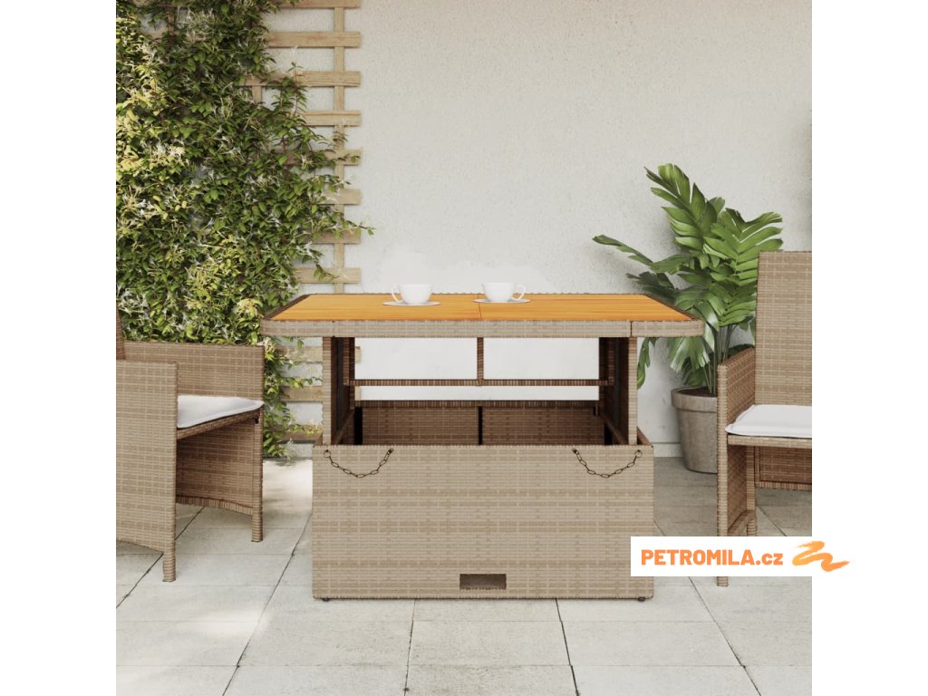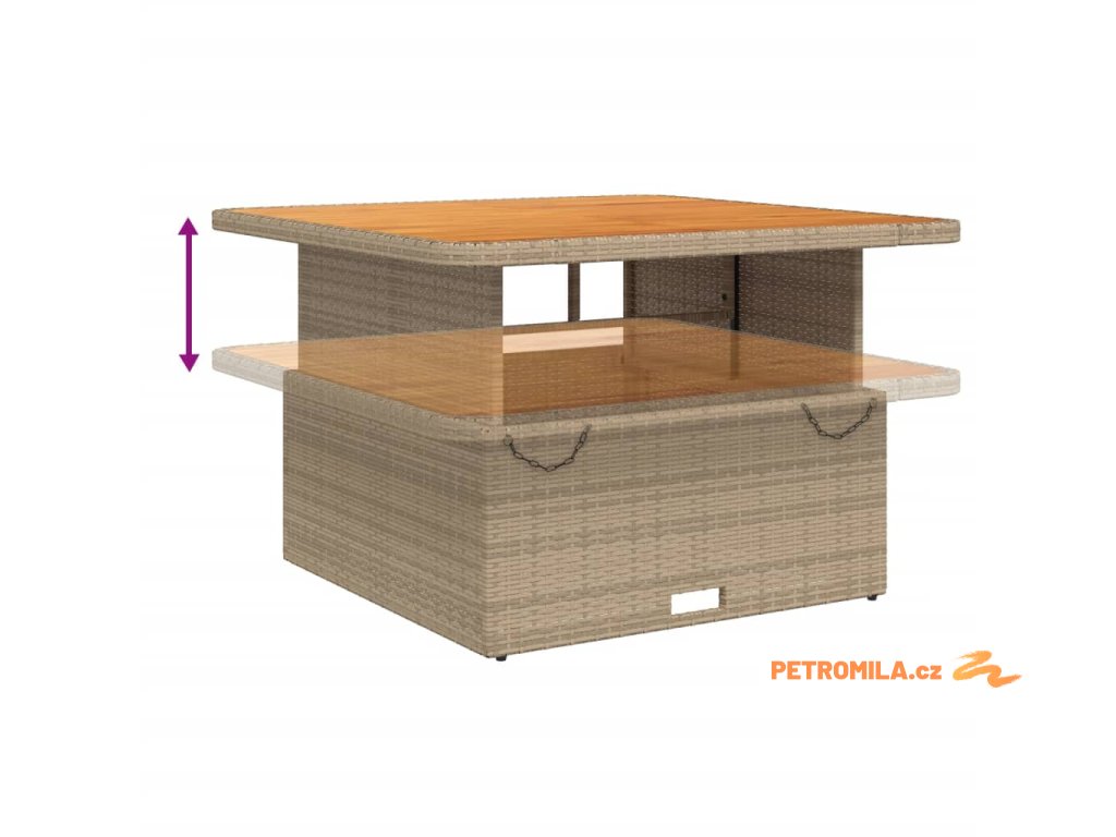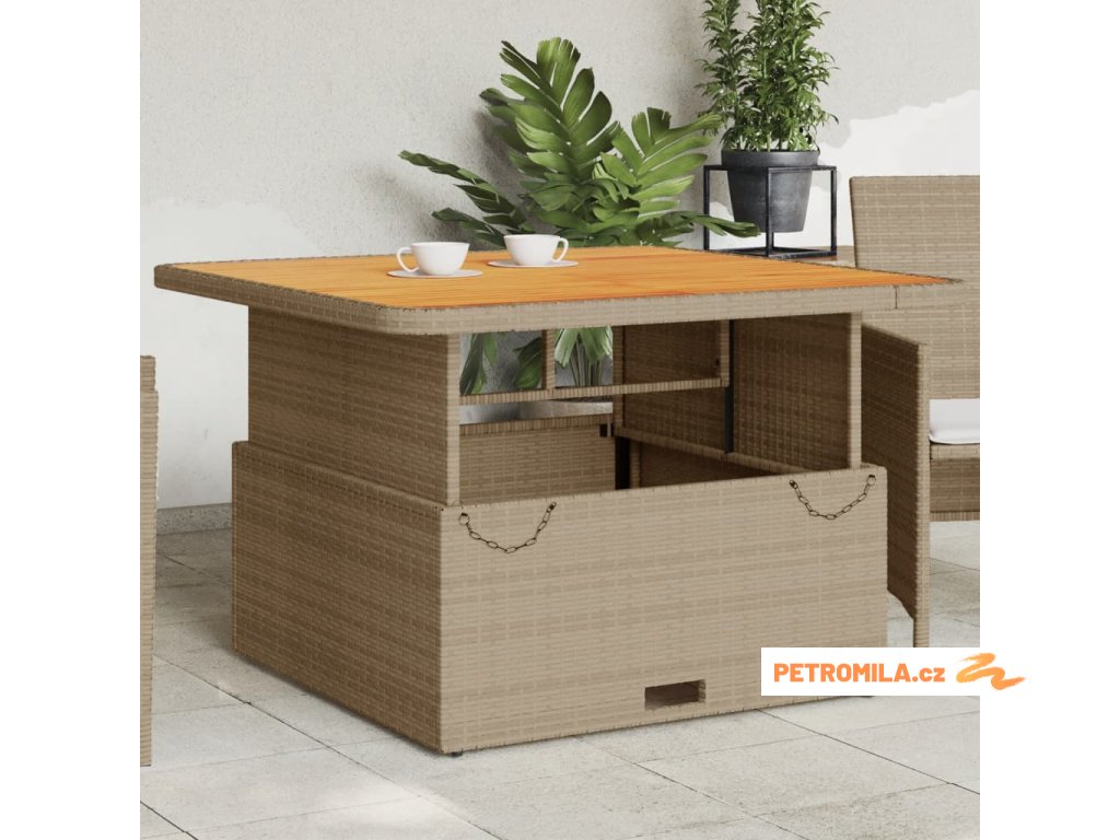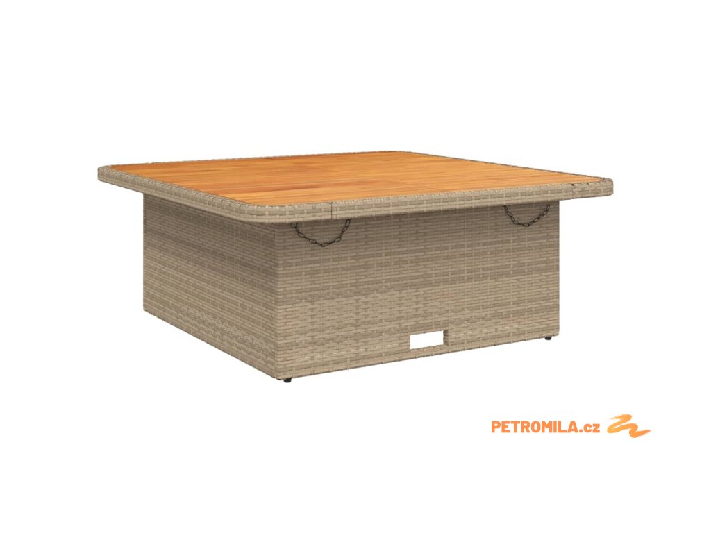 Zahradní stolek béžový 110 x 110 x 71 cm polyratan a akácie