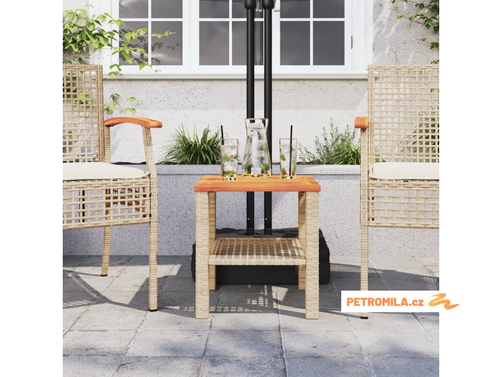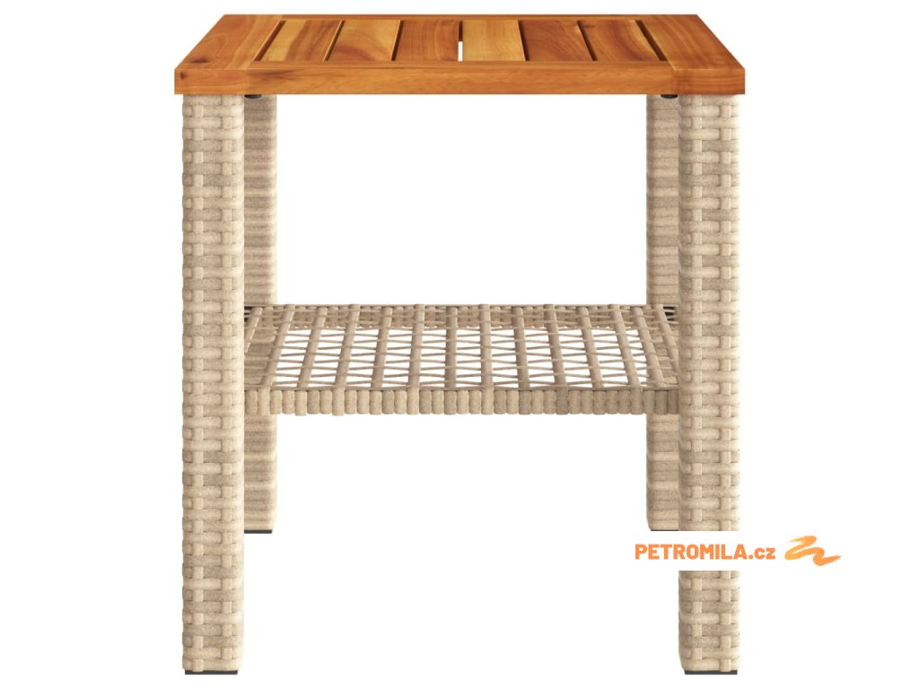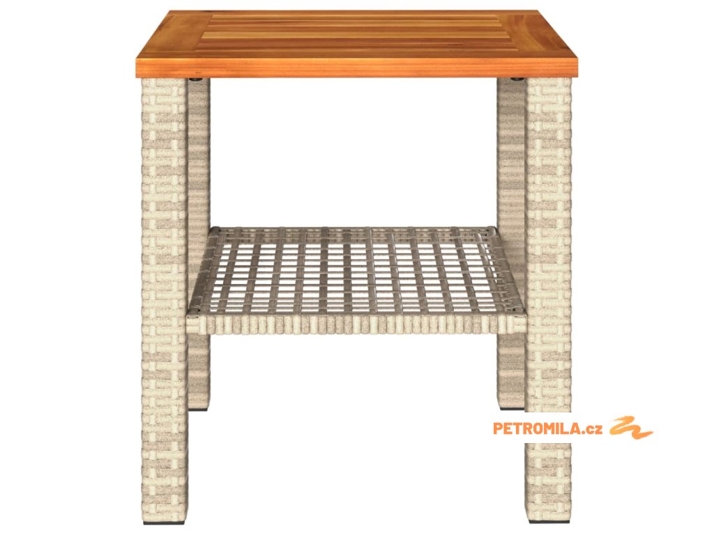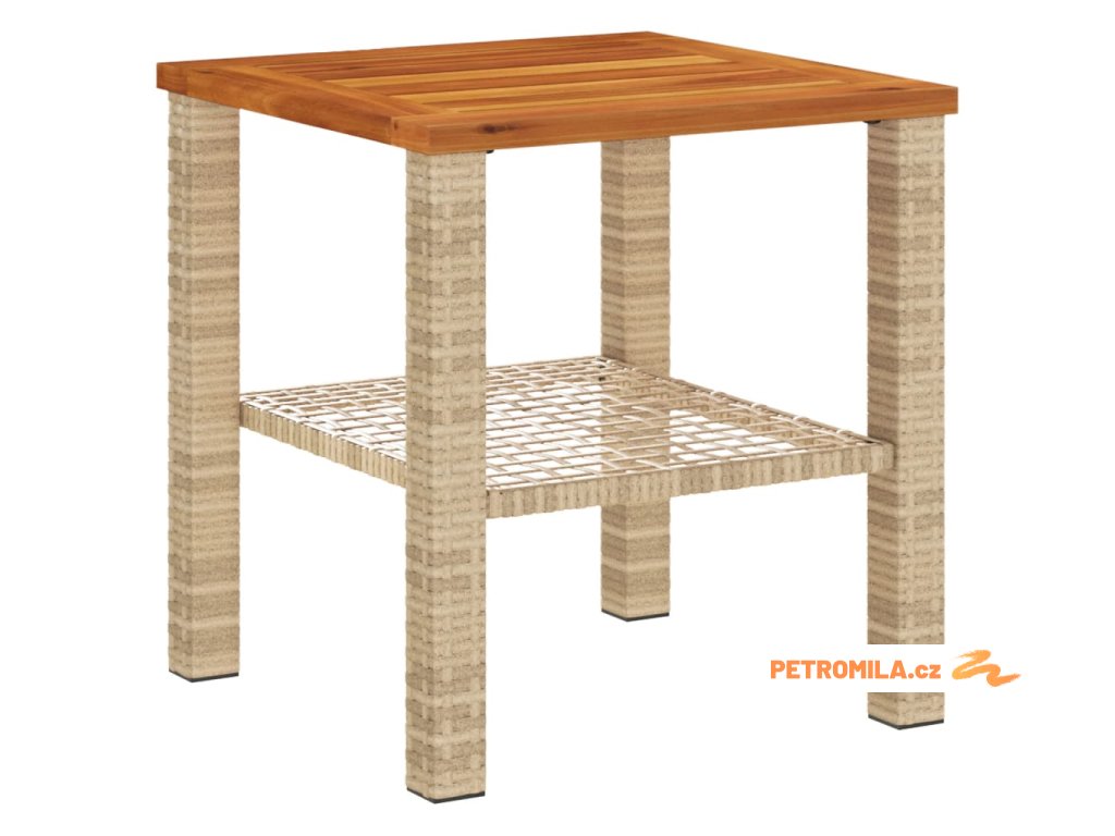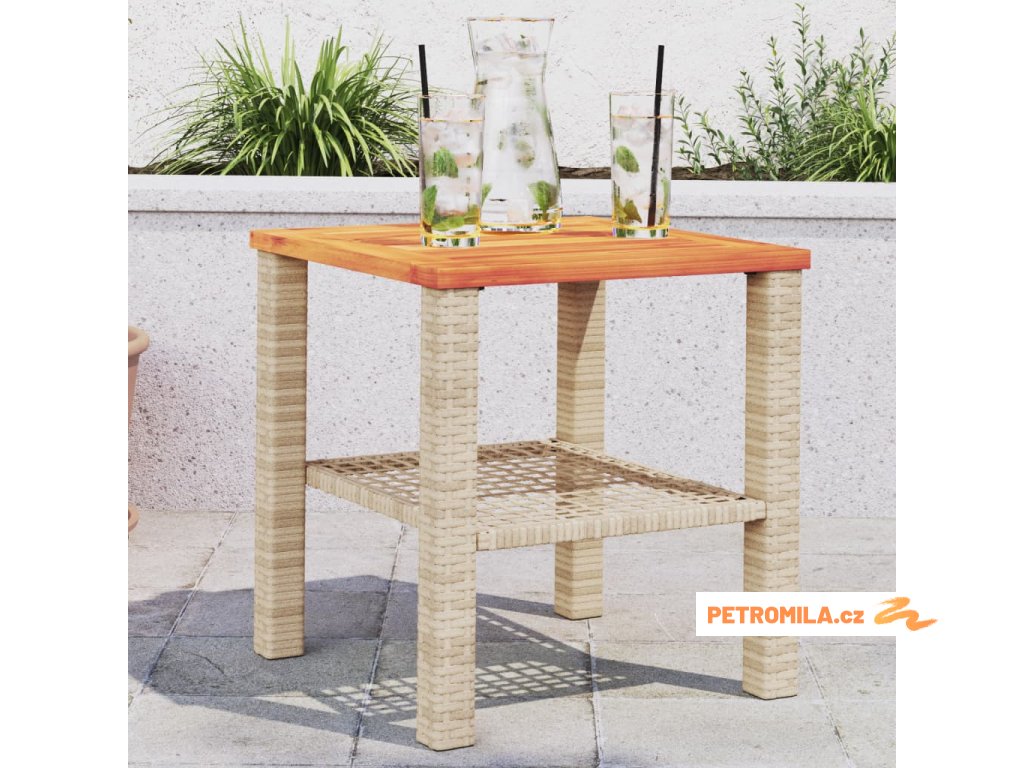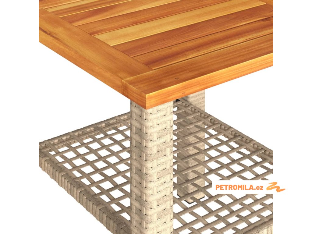 Zahradní stolek béžový 40 x 40 x 42 cm polyratan akáciové dřevo