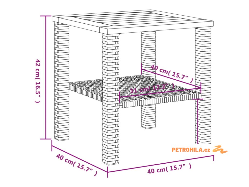 - Rozměry: 40 x 40 x 42 cm (D x Š x V)