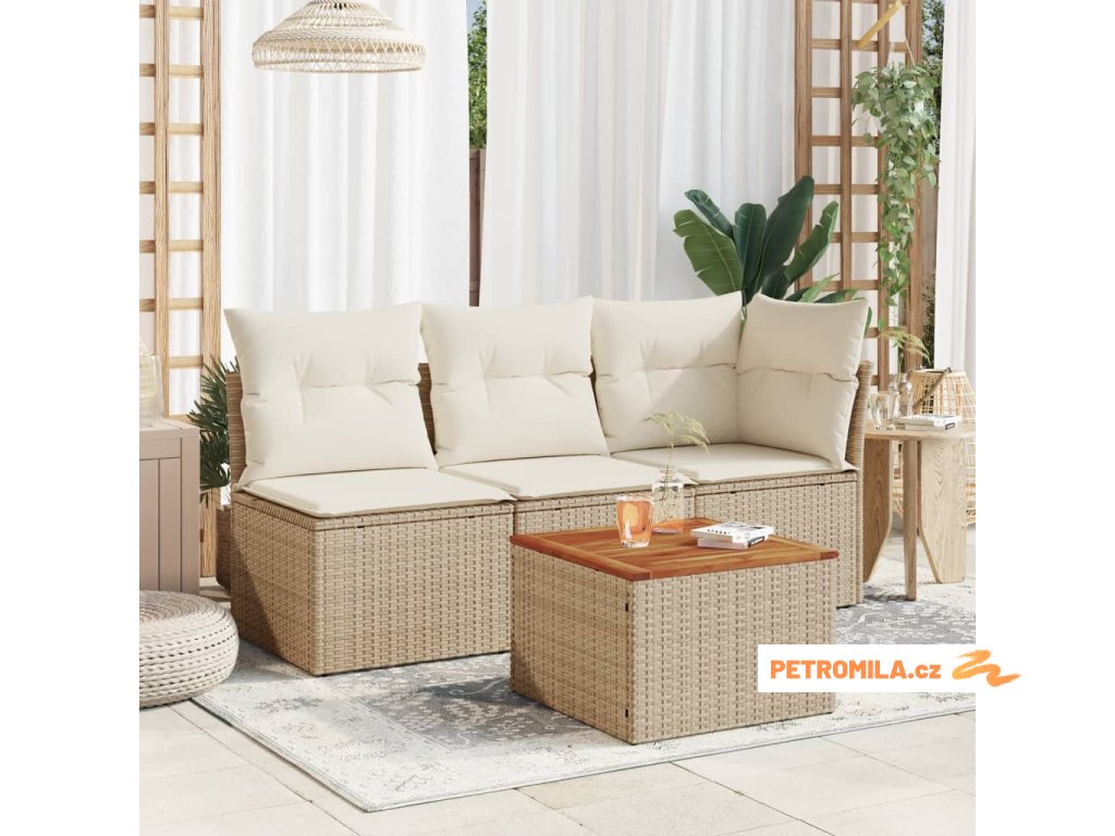 - Materiál: PE ratan, práškově lakovaná ocel, masivní akáciové dřevo s olejovou povrchovou úpravou