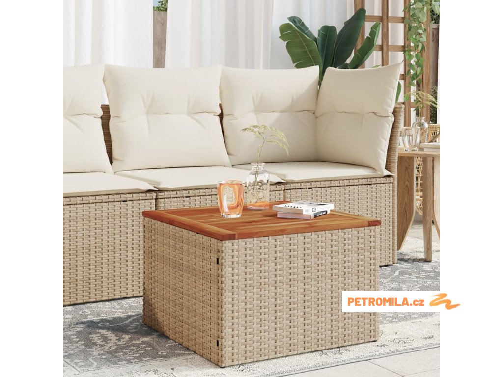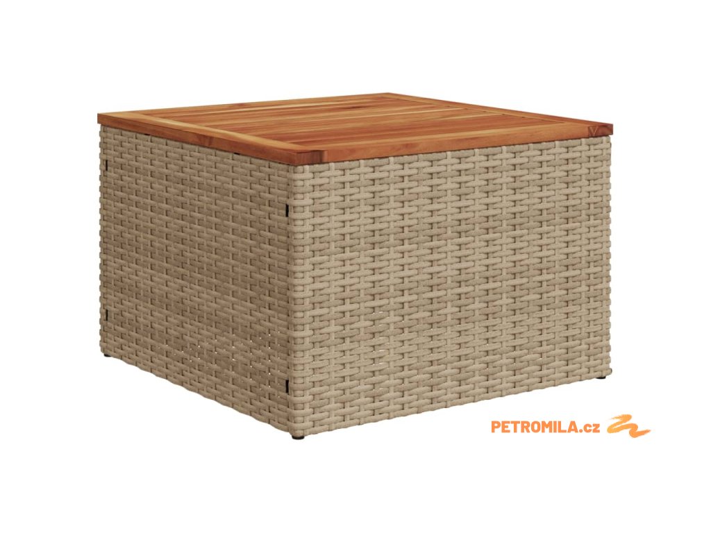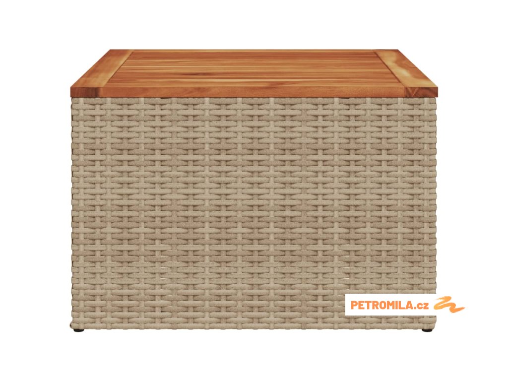 Zahradní stolek béžový 55x55x37 cm polyratan a akáciové dřevo