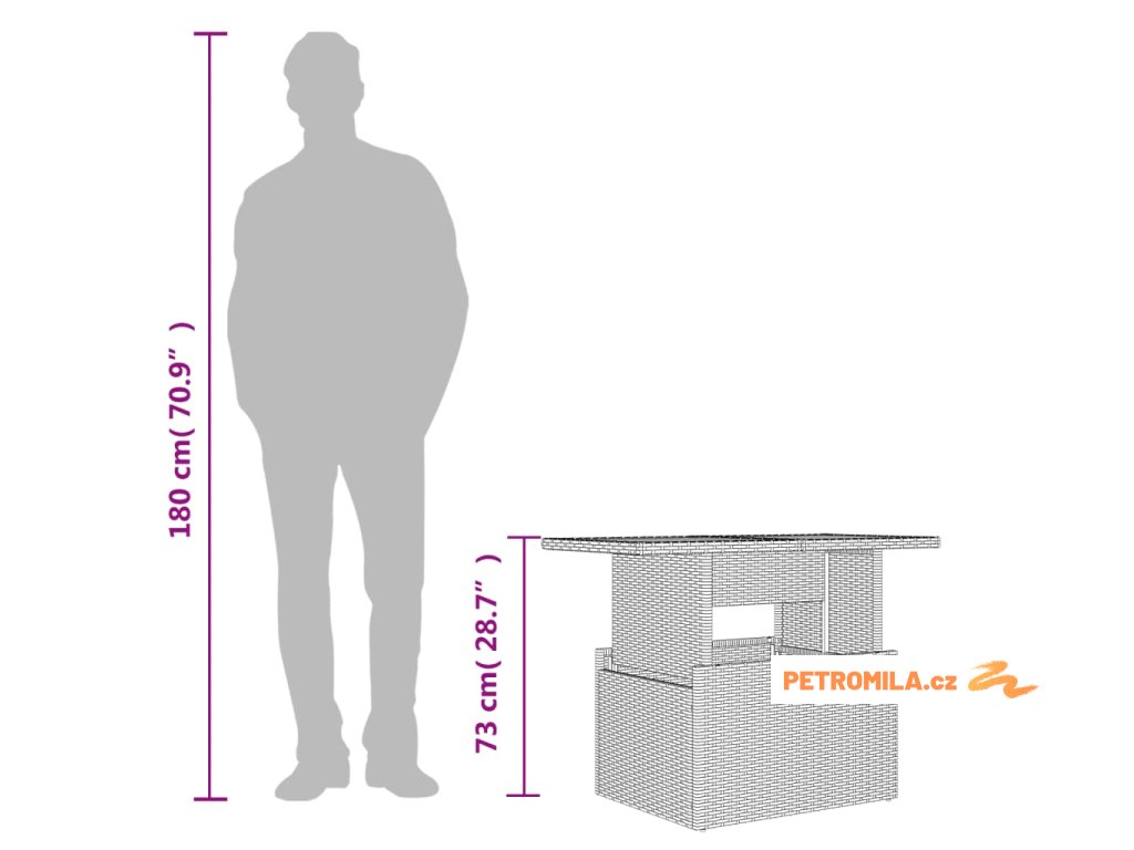 - Nastavitelná deska stolu: Stolní desku lze zvednout tak, aby stůl byl vyšší, takže jej můžete přeměnit z konferenčního stolku na jídelní. Skvěle se hodí pro návštěvy nebo pro stolování venku.