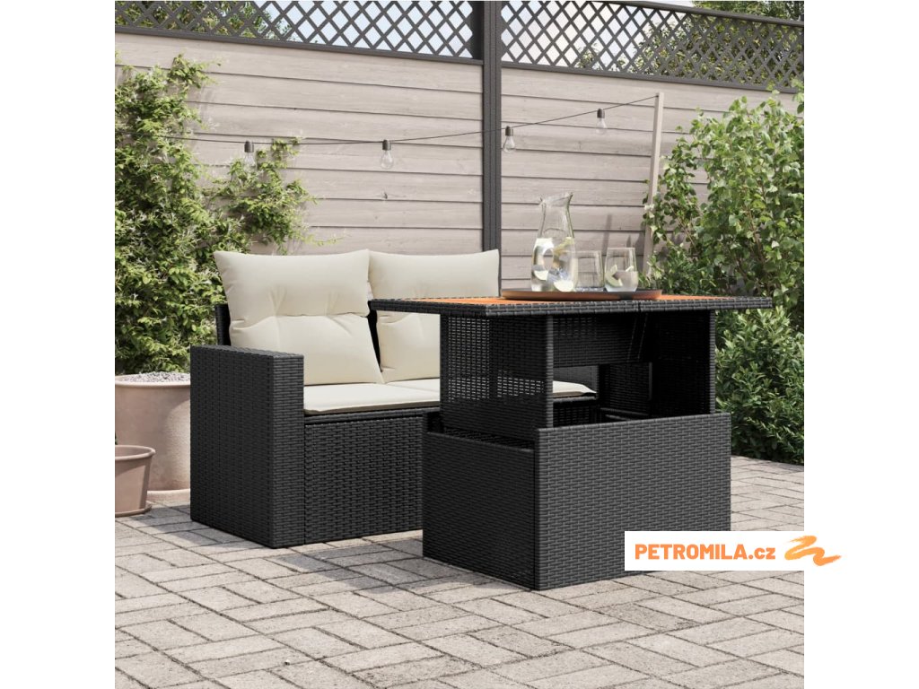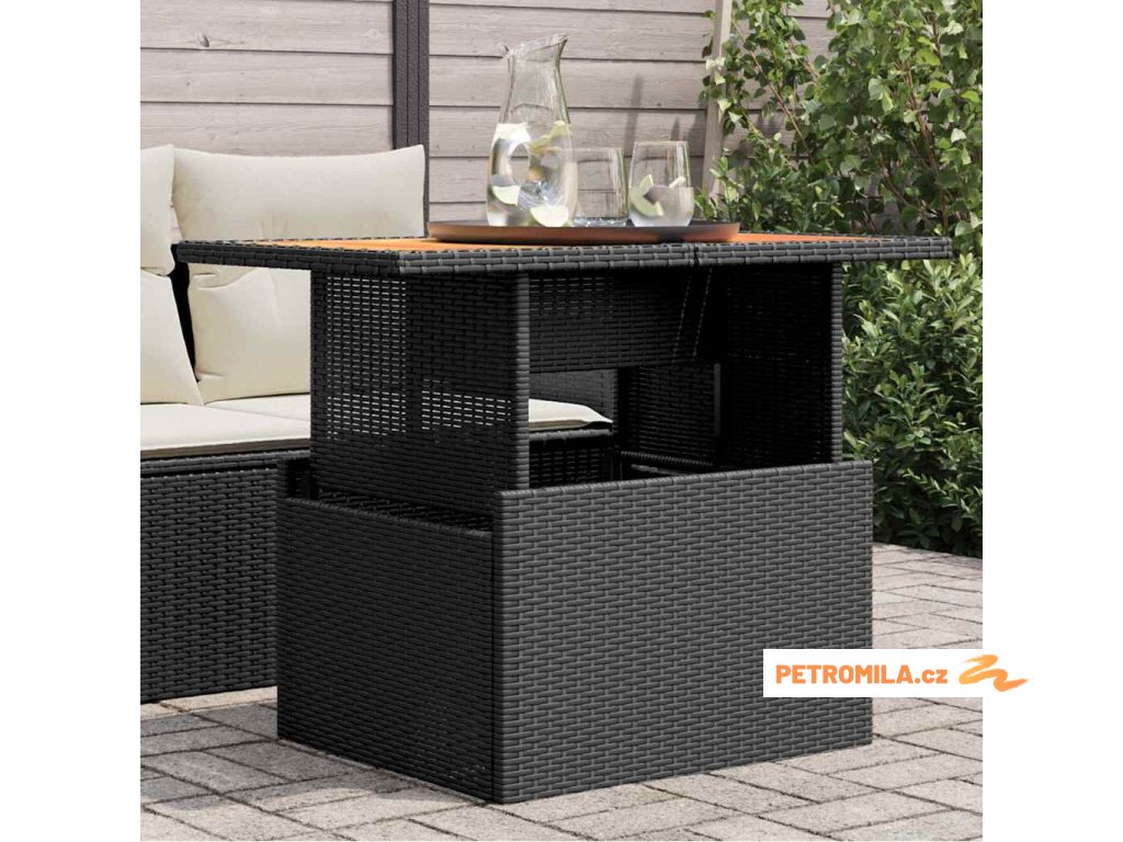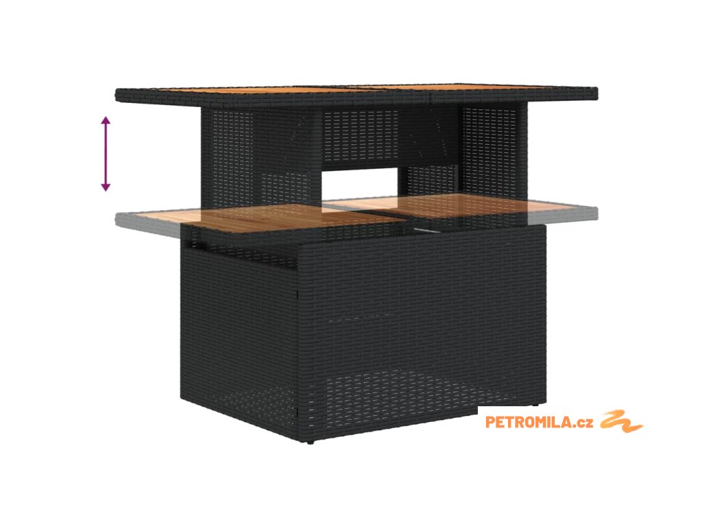 Zahradní stolek černý 100 x 55 x 73 cm polyratan a akácie