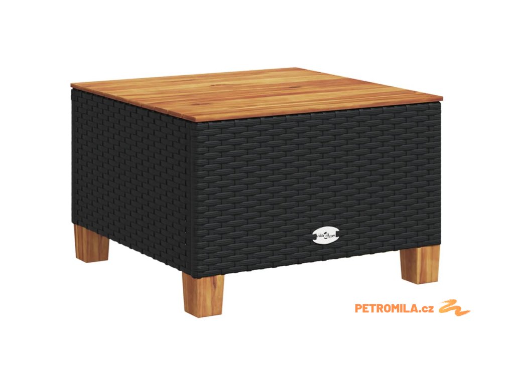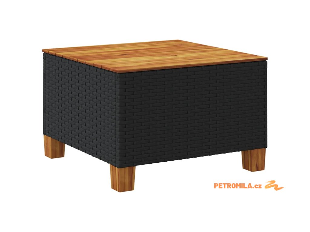 Zahradní stolek černý 55 x 55 x 36 cm polyratan akáciové dřevo