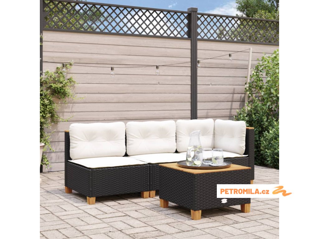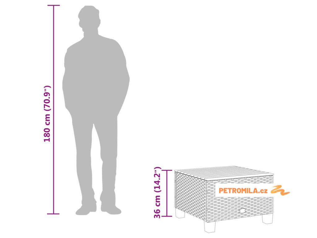 - Materiál: PE ratan, práškově lakovaná ocel, masivní akáciové dřevo s přírodní olejovou povrchovou úpravou