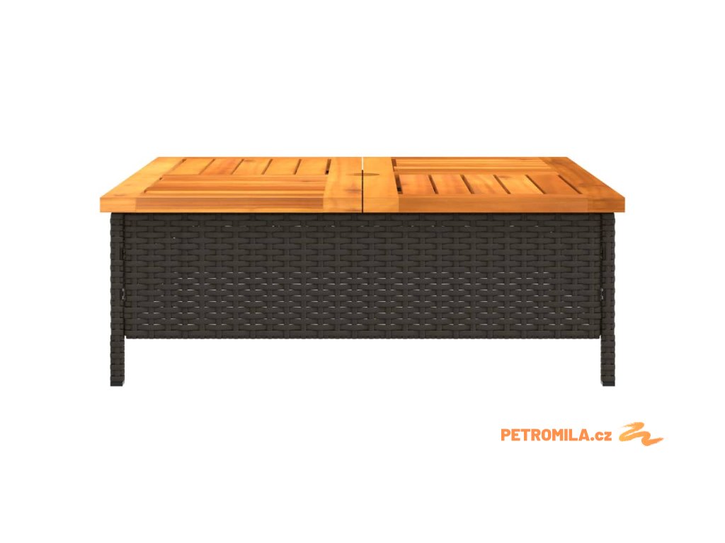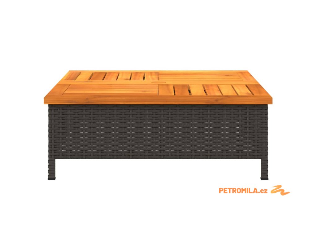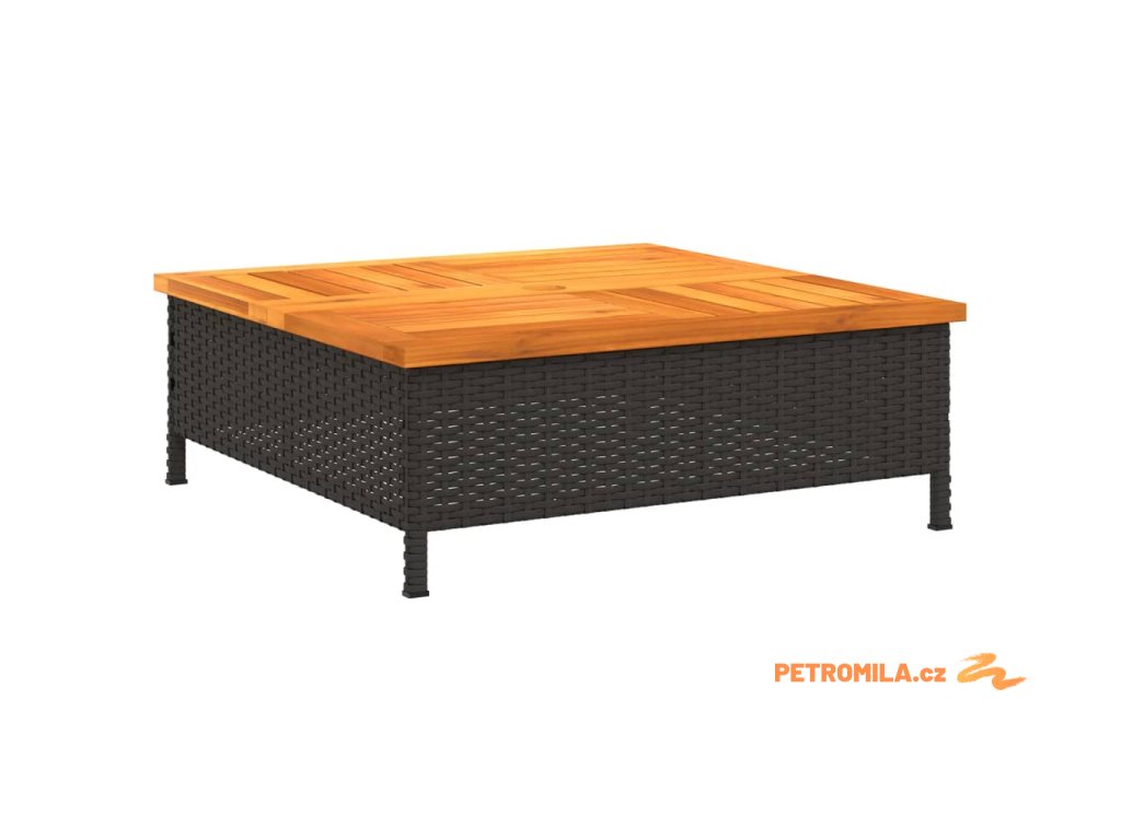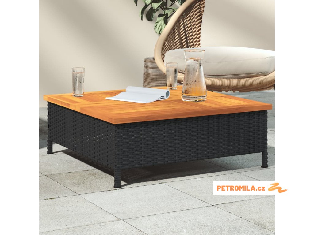 Zahradní stolek černý 70 x 70 x 25 cm ratan a akáciové dřevo