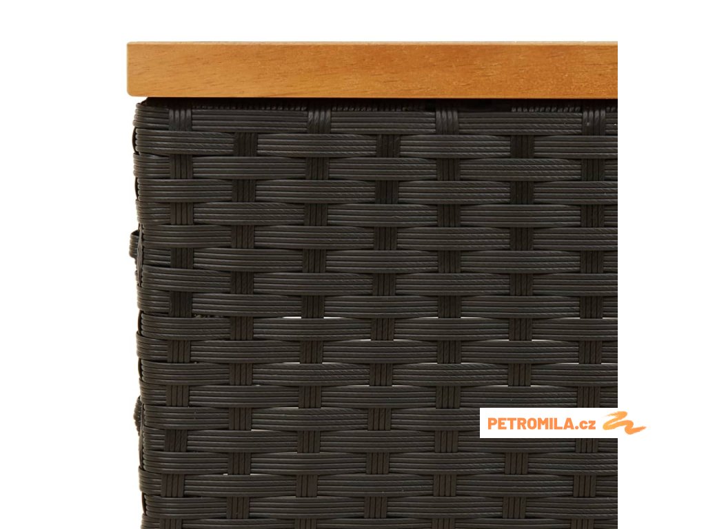 - Materiál: PE ratan, práškově lakovaná ocel, masivní akáciové dřevo s olejovou povrchovou úpravou