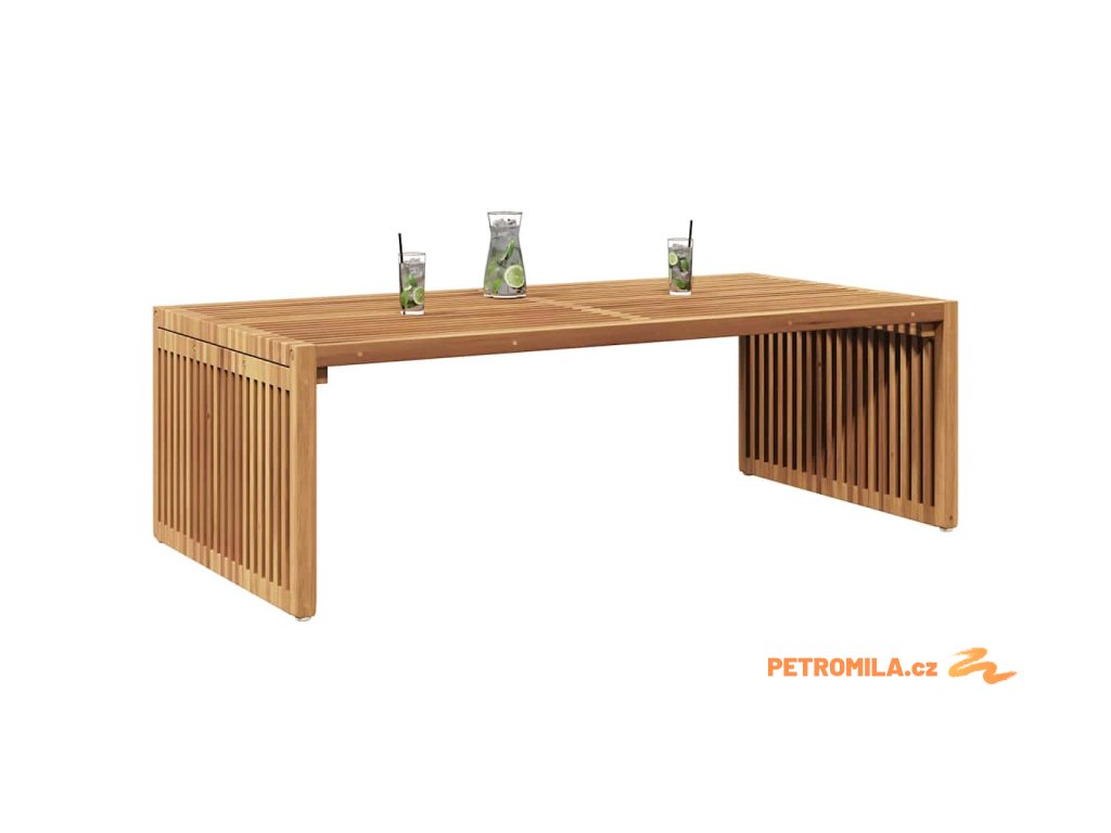 Tento venkovní stůl kombinuje styl a odolnost. Skvěle zapadá do současných trendů venku, přidává jak styl, tak funkčnost na terasy a zahrady. Masivní teakové dřevo mu dává elegantní vzhled s hladkým povrchem a matnou úpravou. Je určený na ven, ideální na klidné setkání nebo večírky, prostě zvedne náladu ve vaší venkovní oblasti.
