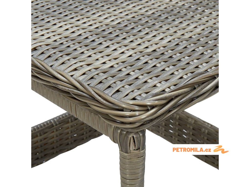 - Materiál: PE (polyethylenový) ratan, práškově lakovaná ocel, PP deska