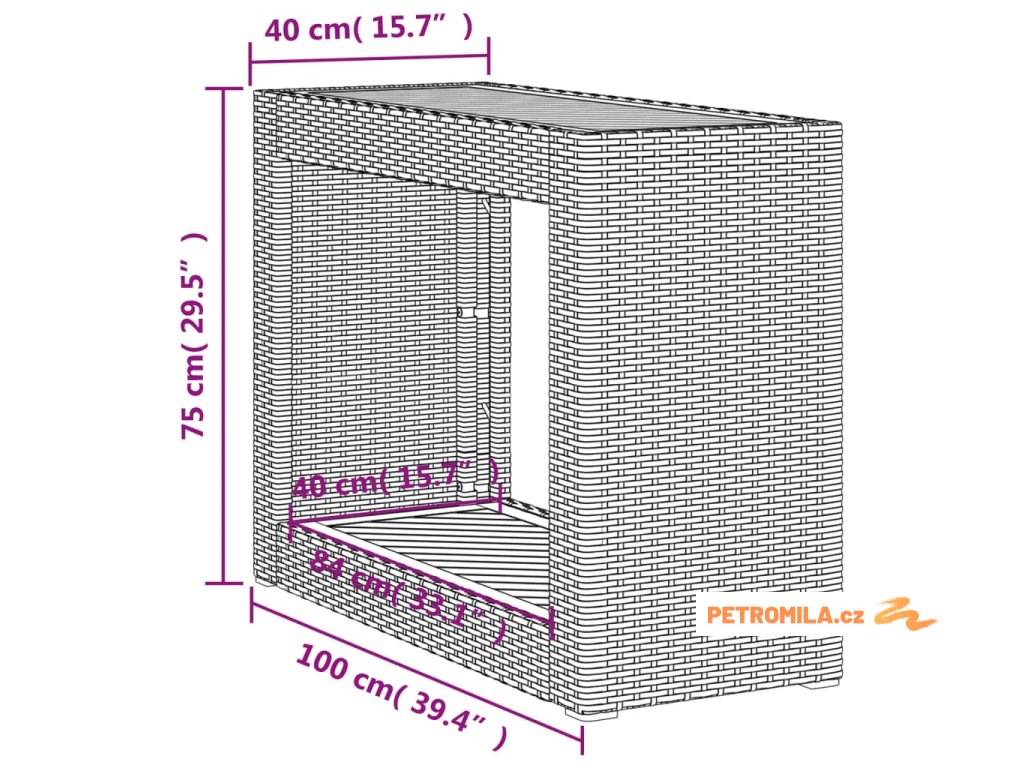 - Rozměry: 100 x 40 x 75 cm (D x Š x V)