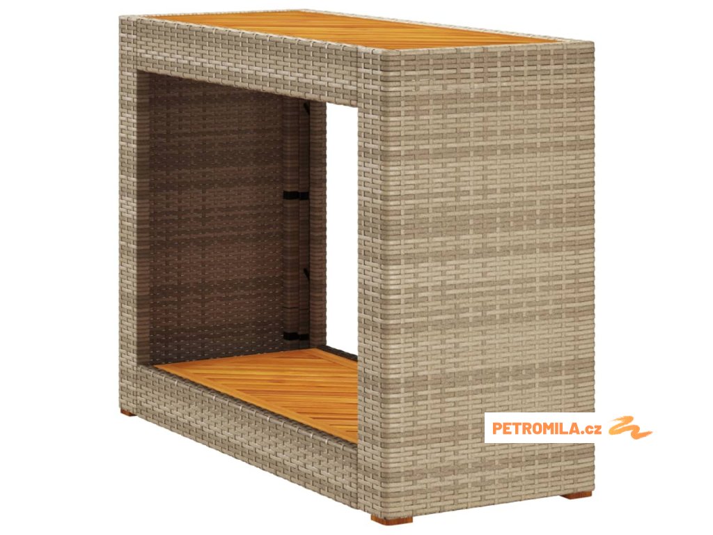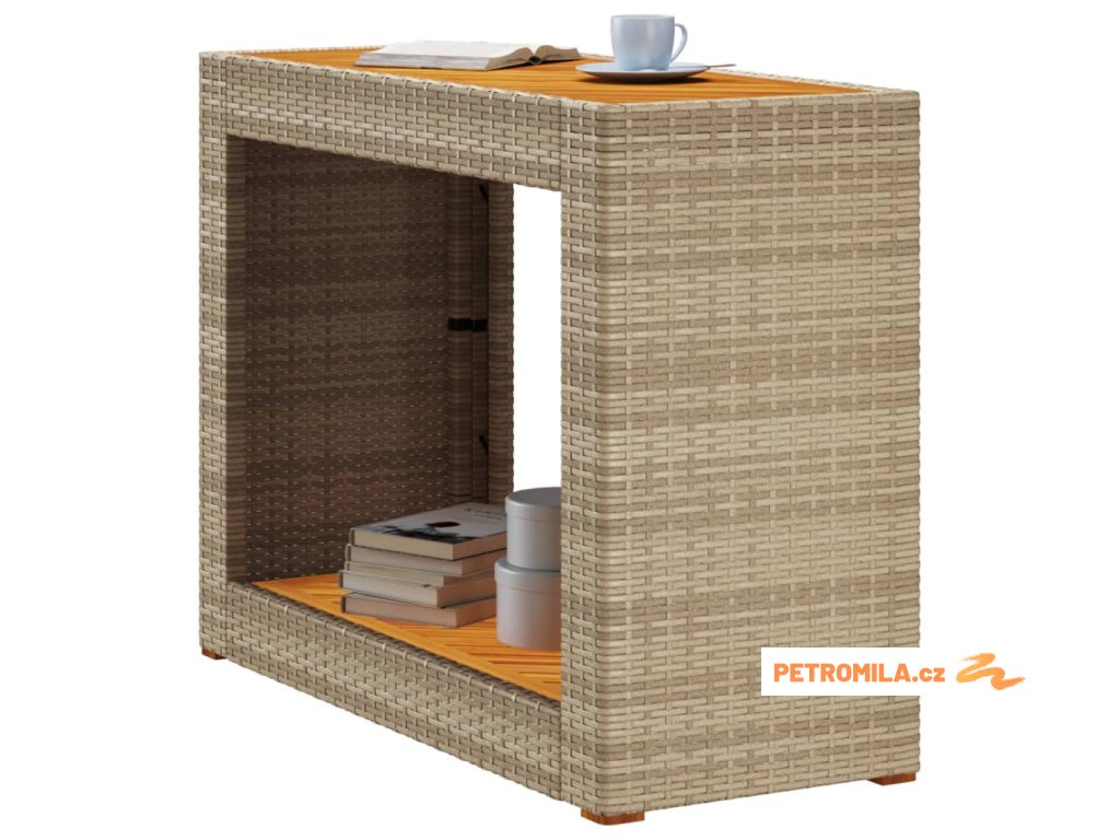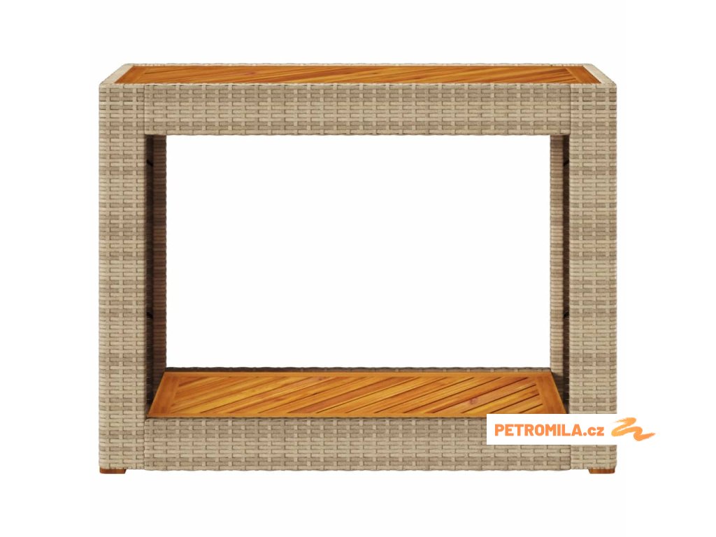 Zahradní stolek s dřevěnou deskou béžový 100x40x75 cm polyratan