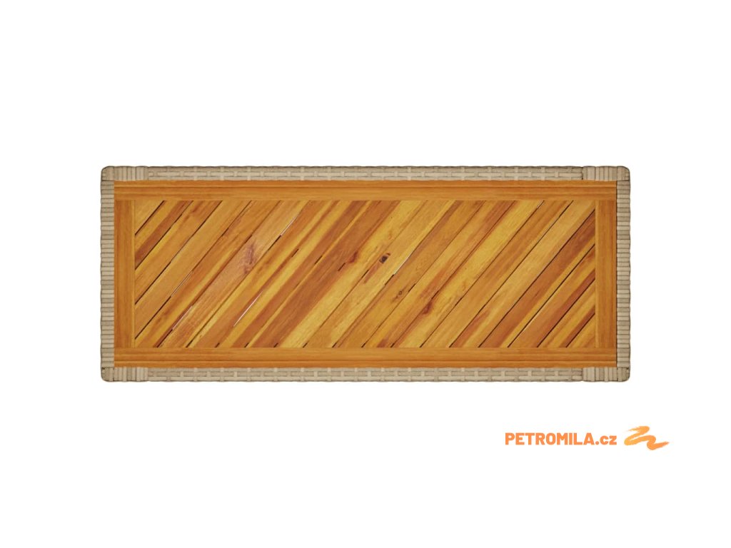 - Materiál: PE ratan, práškově lakovaná ocel, masivní akáciové dřevo s olejovou povrchovou úpravou