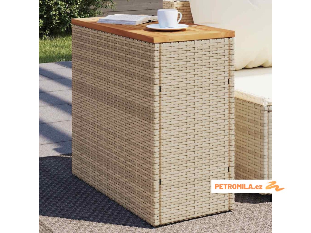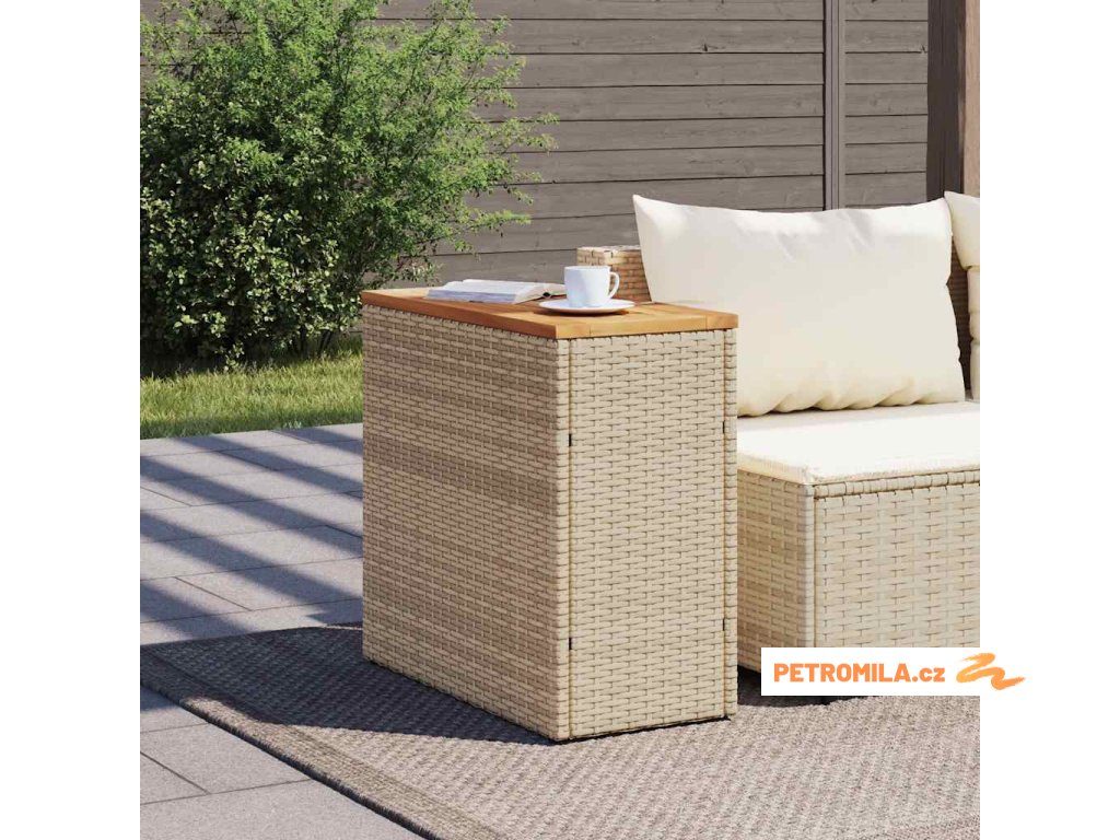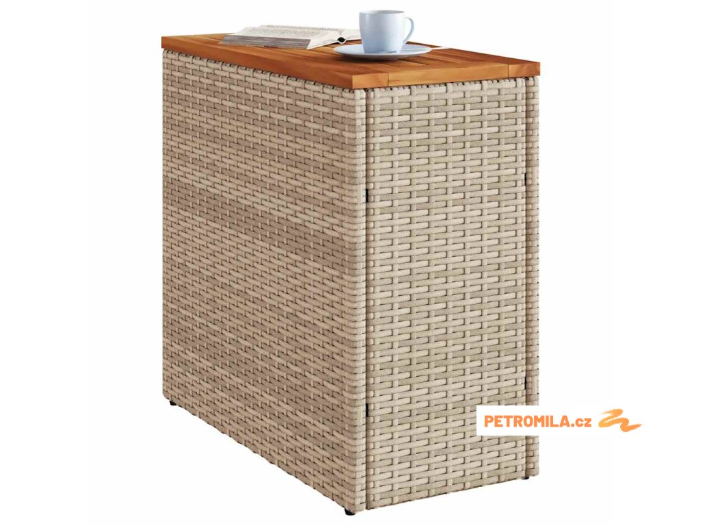 Zahradní stolek s dřevěnou deskou béžový 58x27,5x55cm polyratan