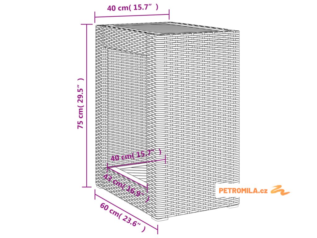 - Rozměry: 60 x 40 x 75 cm (D x Š x V)