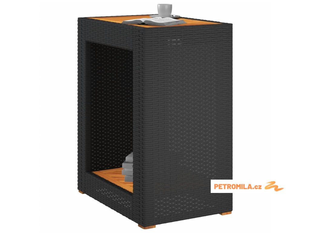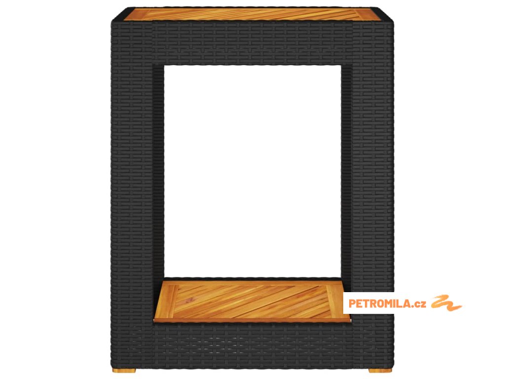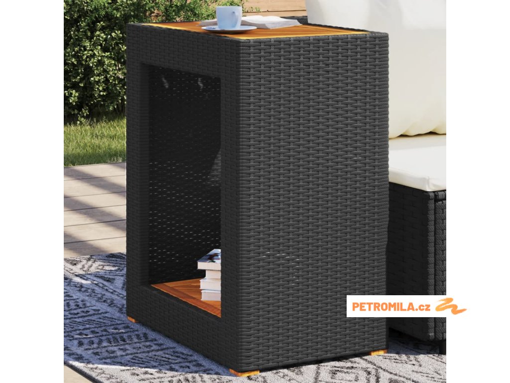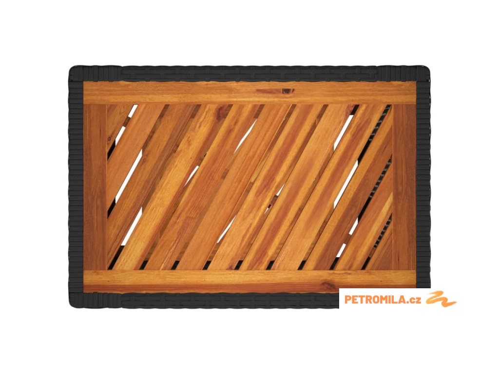 Zahradní stolek s dřevěnou deskou černý 60x40x75 cm polyratan