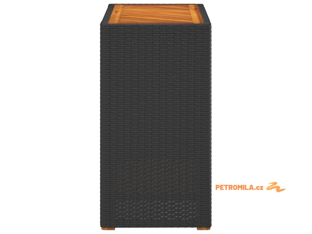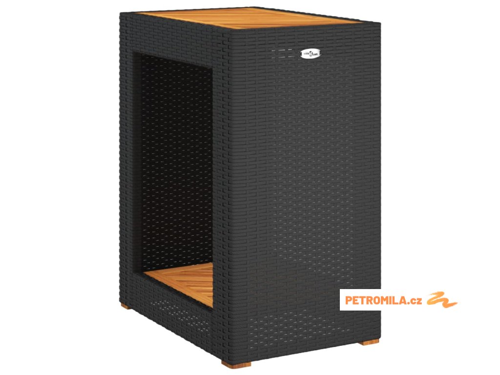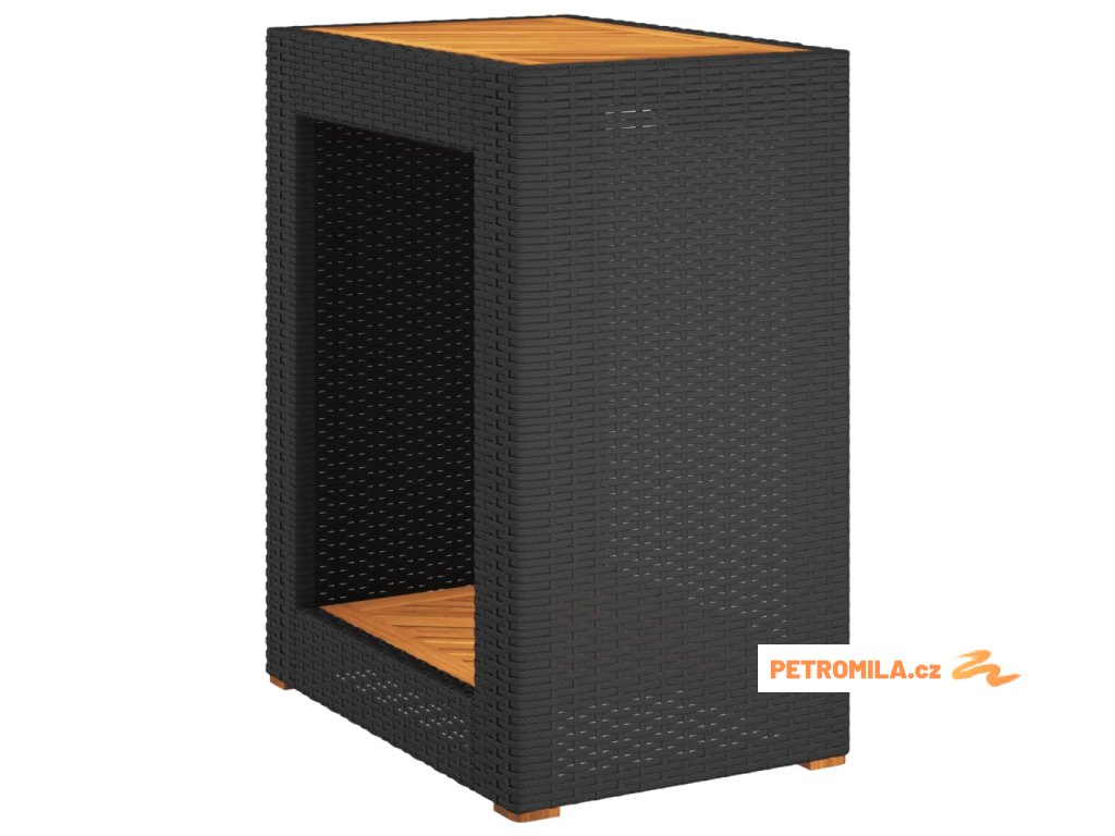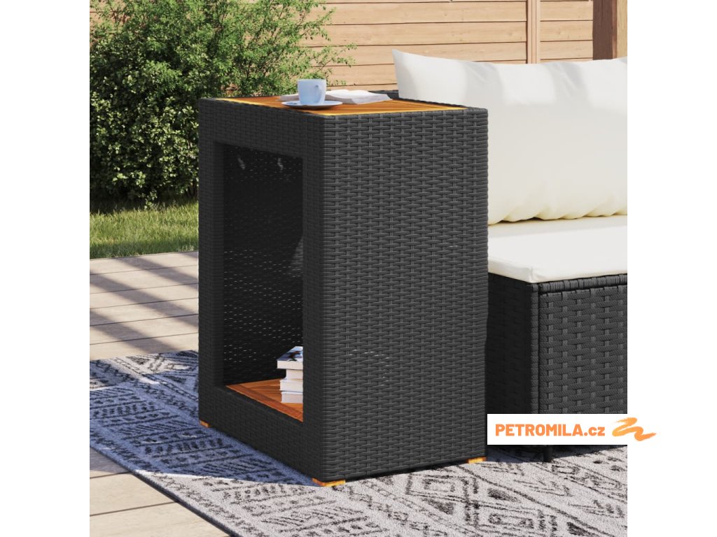 Zahradní stolek s dřevěnou deskou černý 60x40x75 cm polyratan