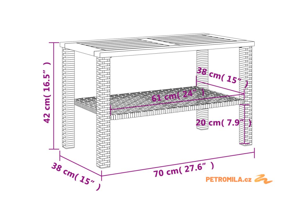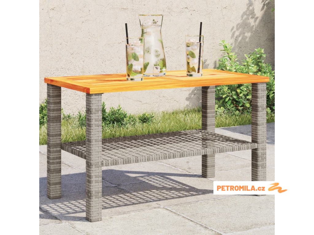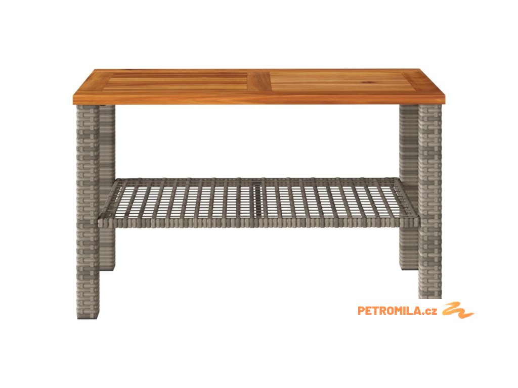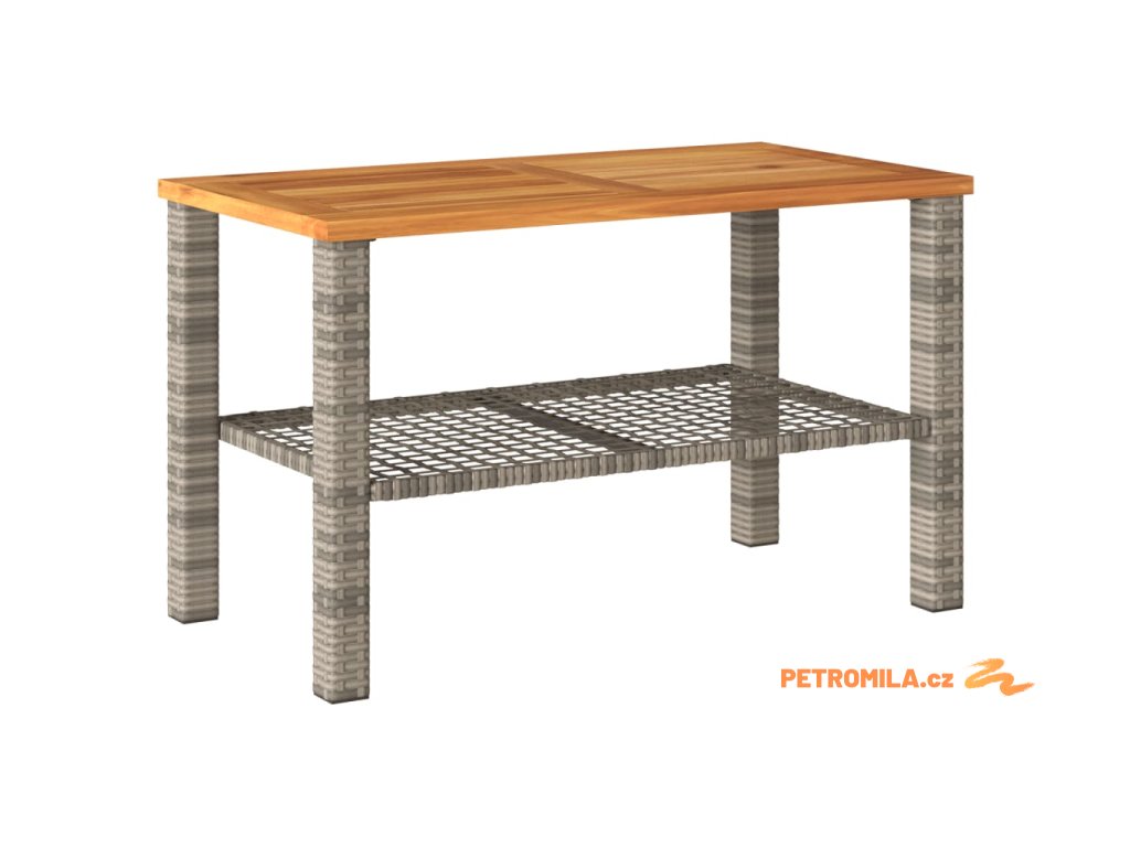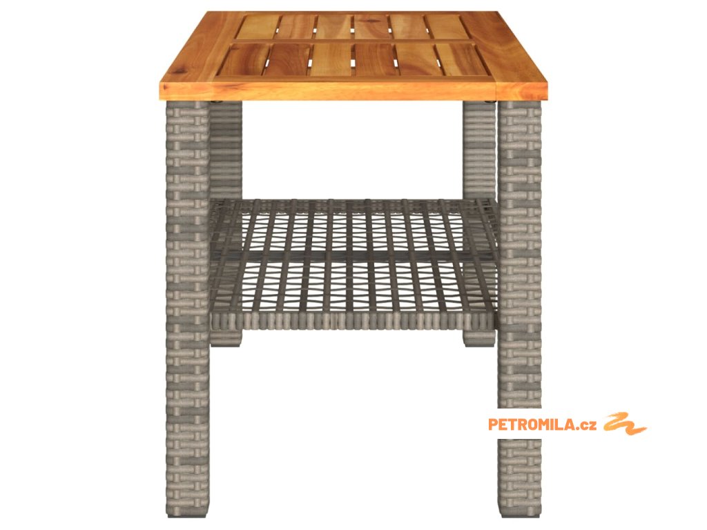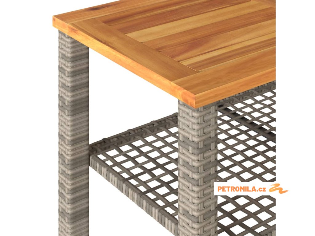 Zahradní stolek šedý 70 x 38 x 42 cm polyratan akáciové dřevo