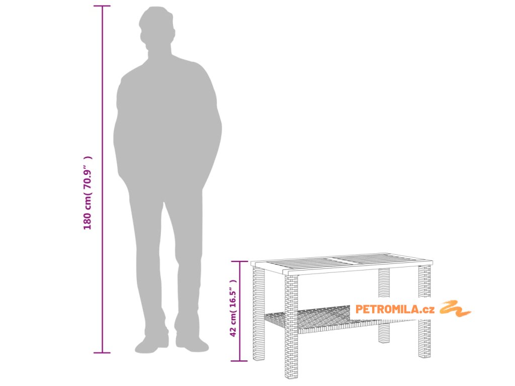 - Materiál: PE ratan, práškově lakovaná ocel, masivní akáciové dřevo s přírodní povrchovou úpravou