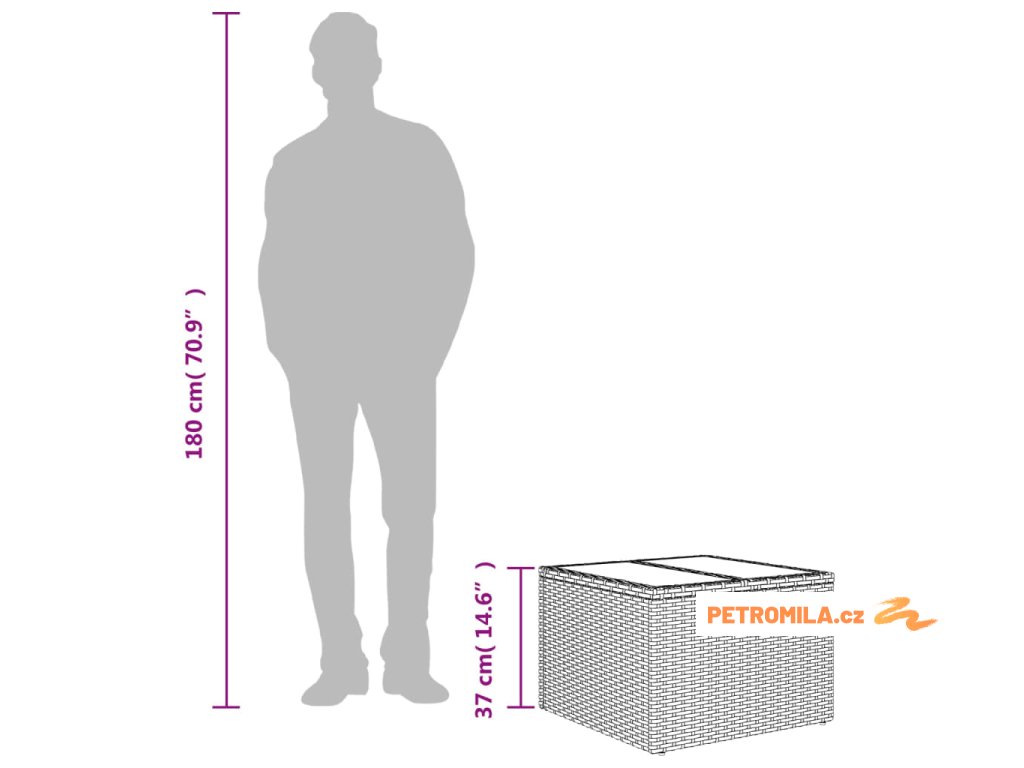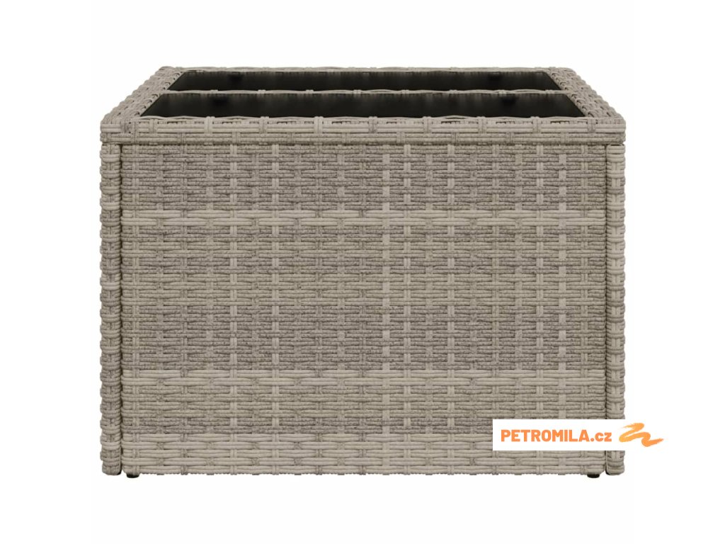 Zahradní stolek skleněná deska světle šedý 55x55x37cm polyratan
