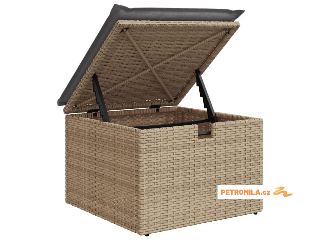 - Úložný prostor: Každý zahradní sedací díl má úložný prostor pod sedákem, který vám poslouží k ukládání podušek, hraček a dalších věcí.