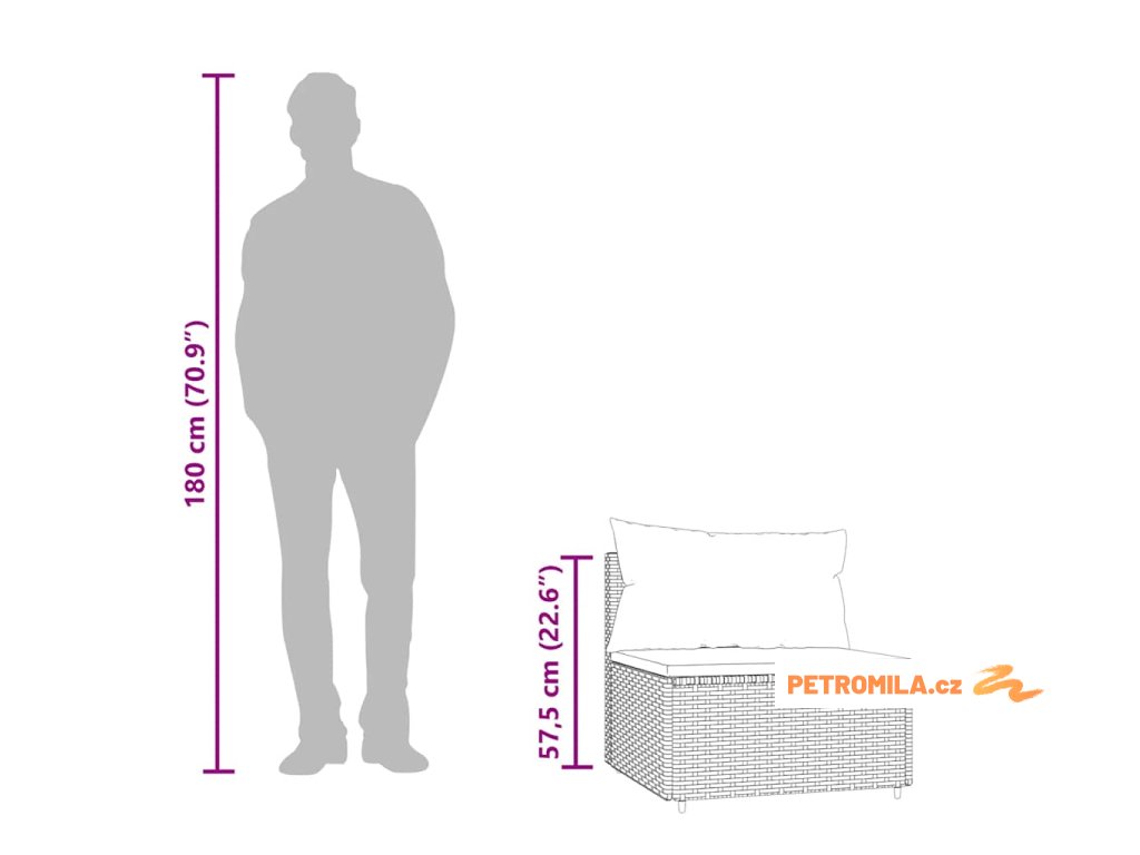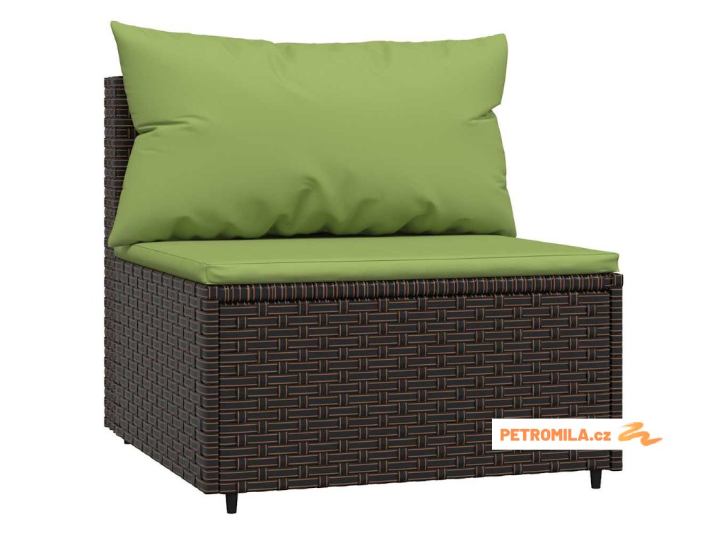Zahradní středová pohovka s poduškami hnědá polyratan