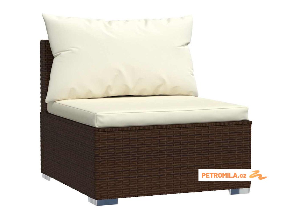 Zahradní středová pohovka s poduškami hnědá polyratan