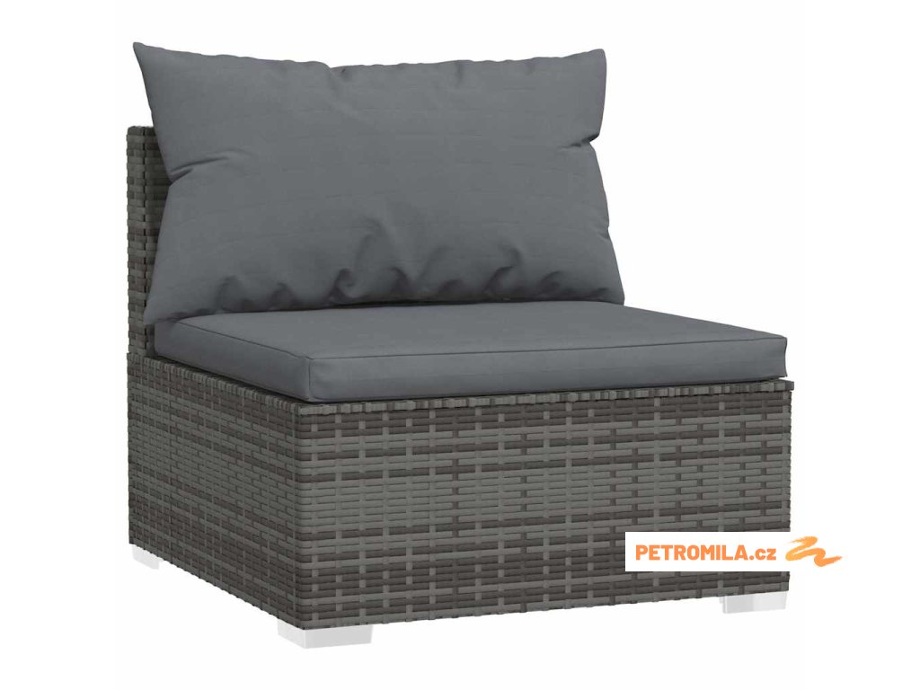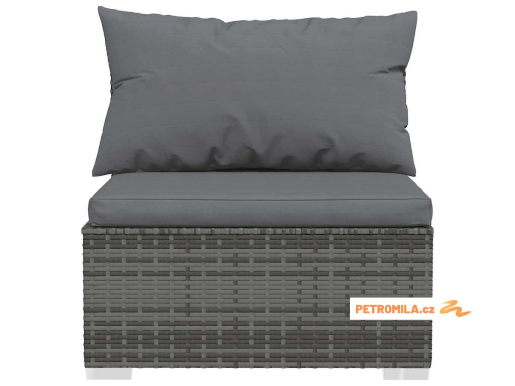 Zahradní středová pohovka s poduškami šedá polyratan