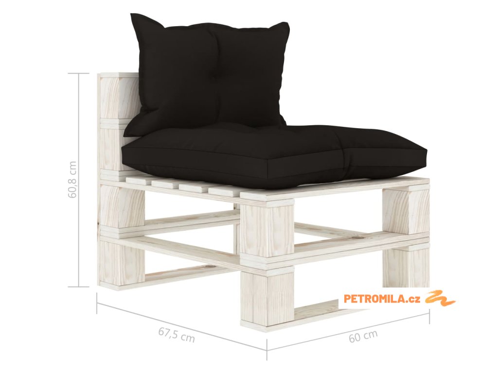 Zahradní středová pohovka z palet s černými poduškami dřevo