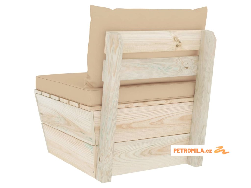 Zahradní sedačka je vyrobená z impregnovaného smrkového dřeva, takže je velice odolná a stabilní. Má pevnou konstrukci a nevyžaduje téměř žádnou údržbu. Podušky na palety jsou čalouněné 100% polyesterem a mají husté polstrování, takže je nesmírně měkká a zajistí vám maximální pohodlí. Středová pohovka vám přijde skvěle vhod, pokud se chcete s rodinou podívat na film, zahrát si video hry nebo si vychutnat pěkné počasí na dvorku. Zahradní posezení má modulární design, což znamená, že je zcela flexibilní a lze ho snadno přesouvat a přizpůsobovat různým prostředím. Můžete ho také zkombinovat s dalšími modulovými díly a vytvořit si originální zahradní sedací soupravu přesně podle vašich představ!