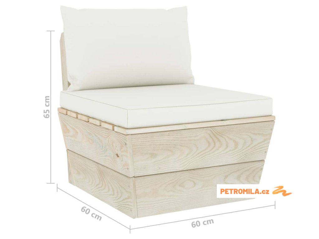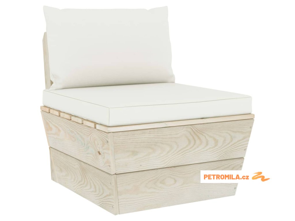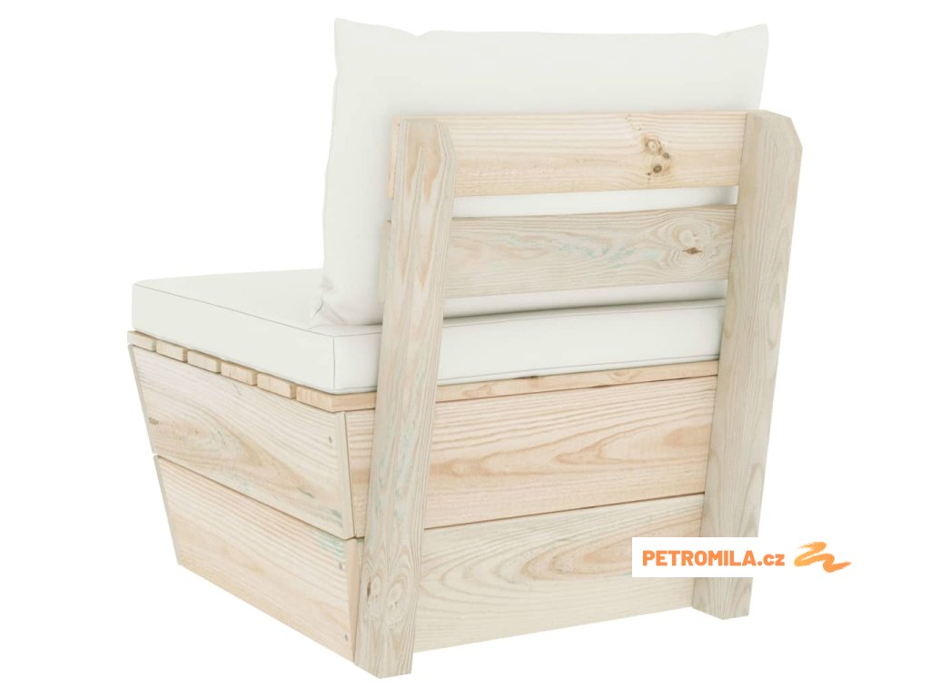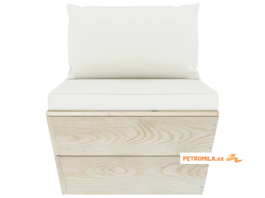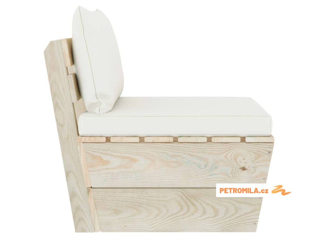 Zahradní sedačka je vyrobená z impregnovaného smrkového dřeva, takže je velice odolná a stabilní. Má pevnou konstrukci a nevyžaduje téměř žádnou údržbu. Podušky na palety jsou čalouněné 100% polyesterem a mají husté polstrování, takže je nesmírně měkká a zajistí vám maximální pohodlí. Středová pohovka vám přijde skvěle vhod, pokud se chcete s rodinou podívat na film, zahrát si video hry nebo si vychutnat pěkné počasí na dvorku. Zahradní posezení má modulární design, což znamená, že je zcela flexibilní a lze ho snadno přesouvat a přizpůsobovat různým prostředím. Můžete ho také zkombinovat s dalšími modulovými díly a vytvořit si originální zahradní sedací soupravu přesně podle vašich představ!