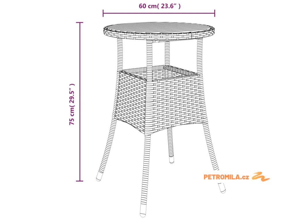 - Materiál: polyratan, práškově lakovaná ocel, masivní akáciové dřevo