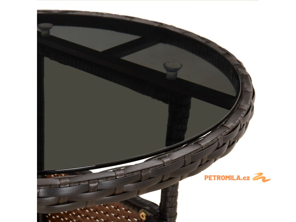 - Materiál: polyratan, práškově lakovaná ocel, tvrzené sklo
