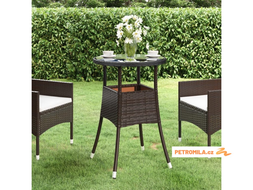 Zahradní stůl Ø 60 x 75 cm tvrzené sklo a polyratan hnědý