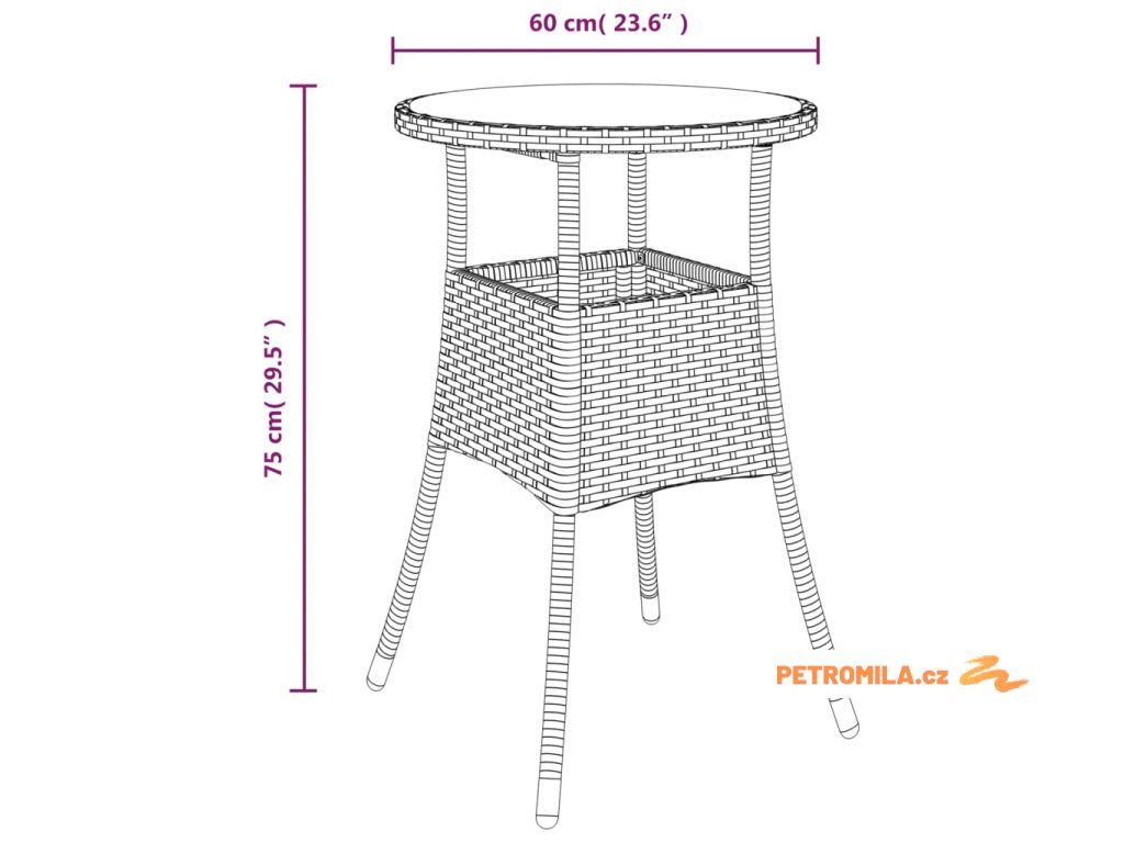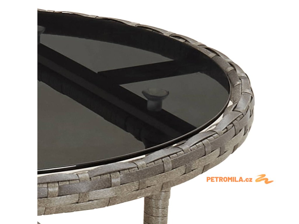 - Materiál: polyratan, práškově lakovaná ocel, tvrzené sklo