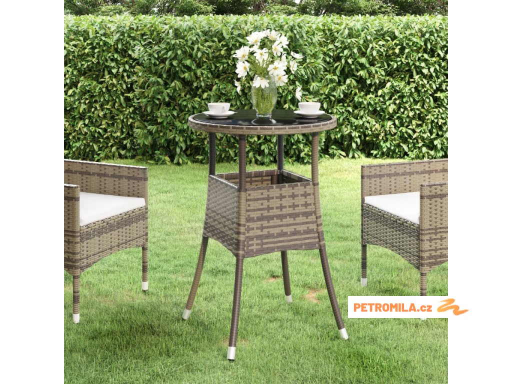 Zahradní stůl Ø 60 x 75 cm tvrzené sklo a polyratan šedý