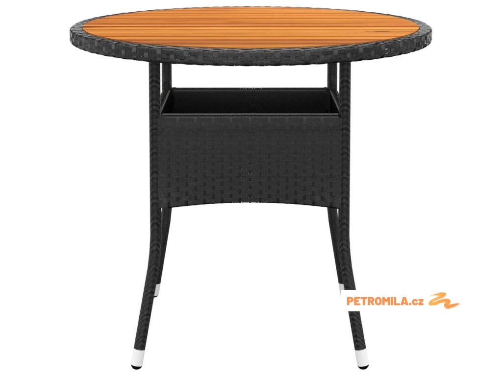 Zahradní stůl Ø 80 x 75 cm akáciové dřevo a polyratan černý
