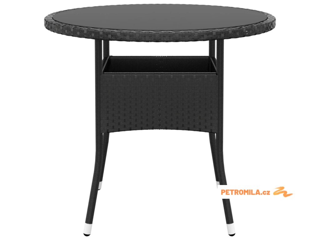 Zahradní stůl Ø 80 x 75 cm tvrzené sklo a polyratan černý