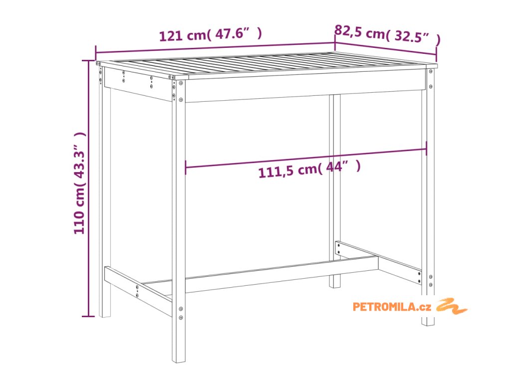 Zahradní stůl 121 x 82,5 x 110 cm masivní dřevo douglasky