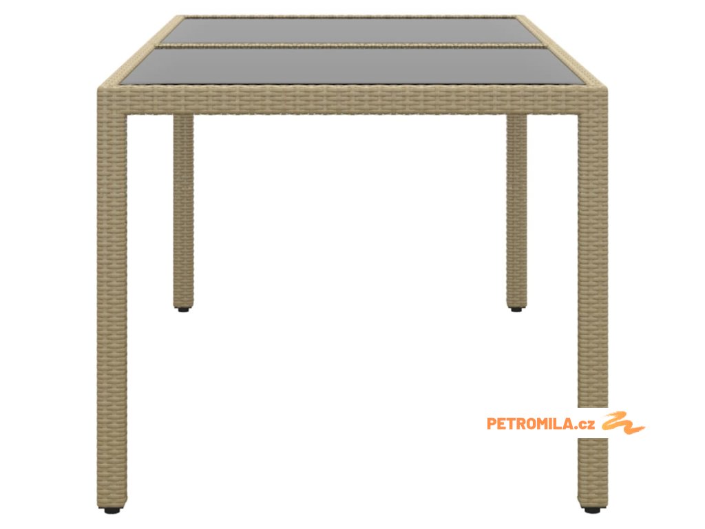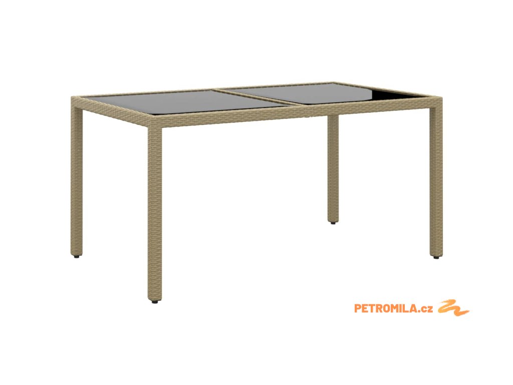 Zahradní stůl 150 x 90 x 75 cm tvrzené sklo a polyratan béžový
