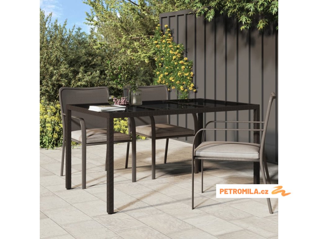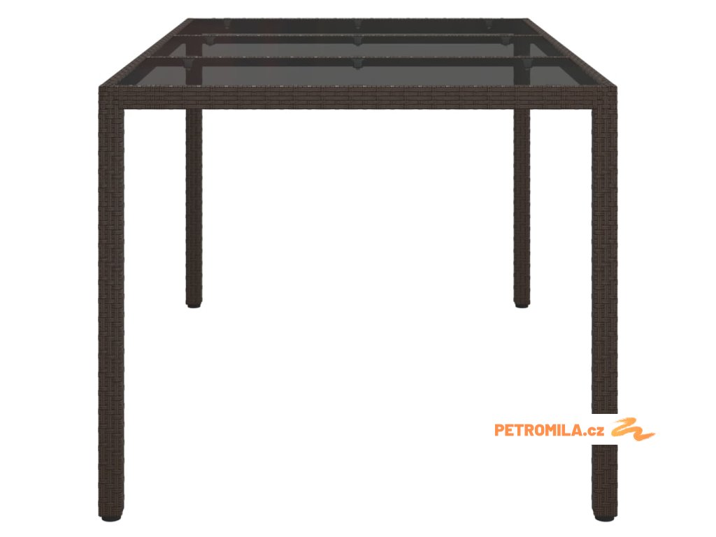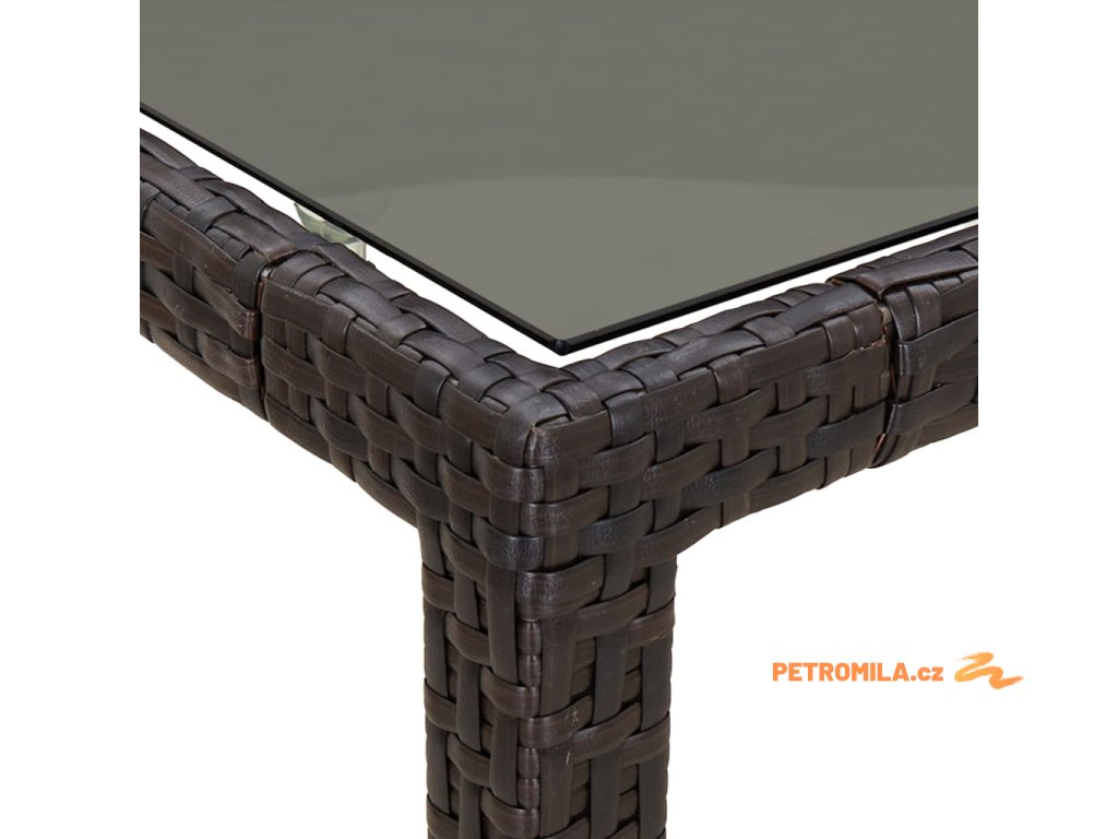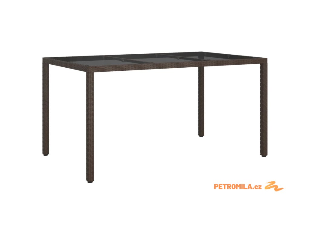 Zahradní stůl 150 x 90 x 75 cm tvrzené sklo a polyratan hnědý