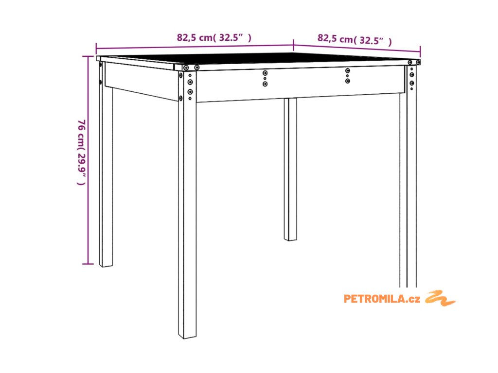 - Rozměry: 82,5 x 82,5 x 76 cm (D x Š x V)