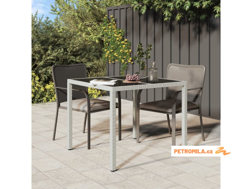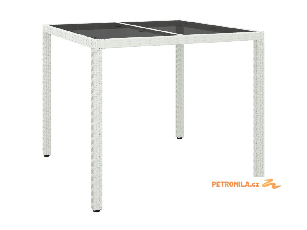 Zahradní stůl 90 x 90 x 75 cm tvrzené sklo a polyratan bílý