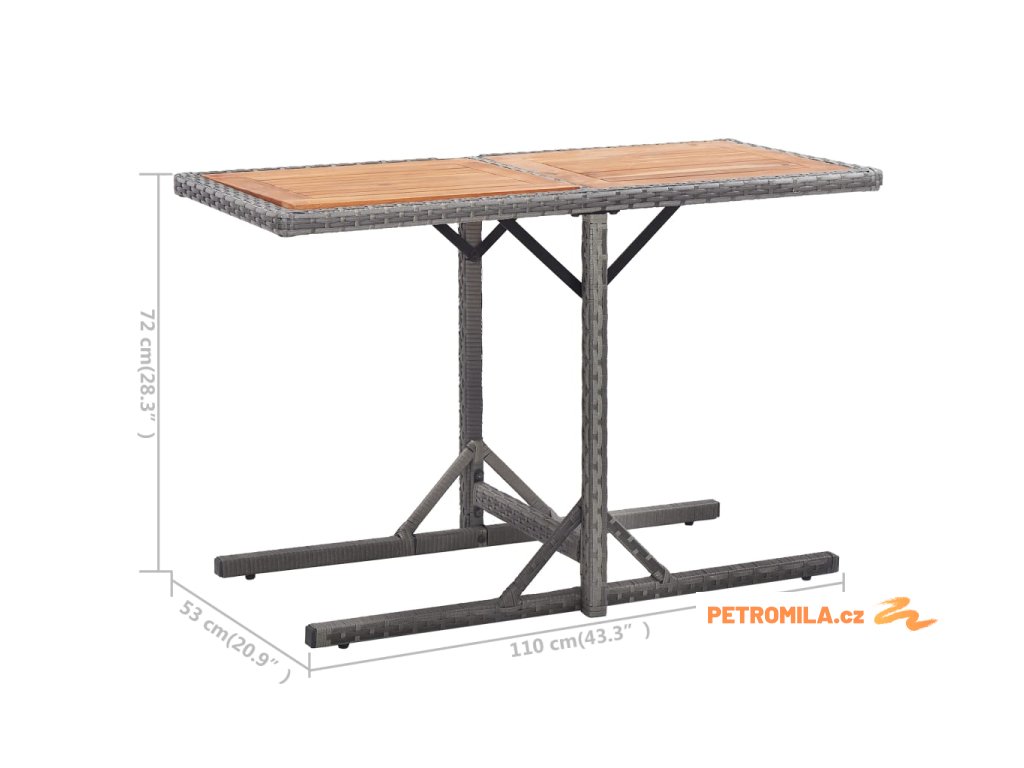 Zahradní stůl antracitový polyratan a masivní akáciové dřevo